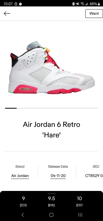 Selling a pair of Air Jordan 6 Retro 'Hare' sneakers in size 9.5. These are in like new condition and ready for a new home! The colorway is a clean mix of neutral grey, white, true red, and black. The release date was April 11, 2020.