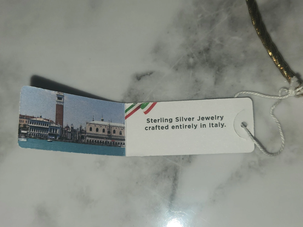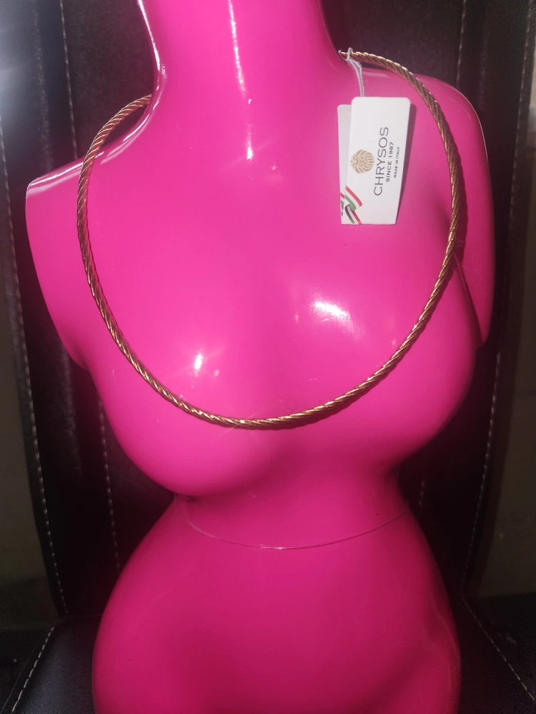 BNWT- Chrysos Sterling Silver Omega Necklace. This necklace is crafted from high-quality sterling silver, ensuring lasting shine and durability. Twisted design, gold plated, and made in Italy.
