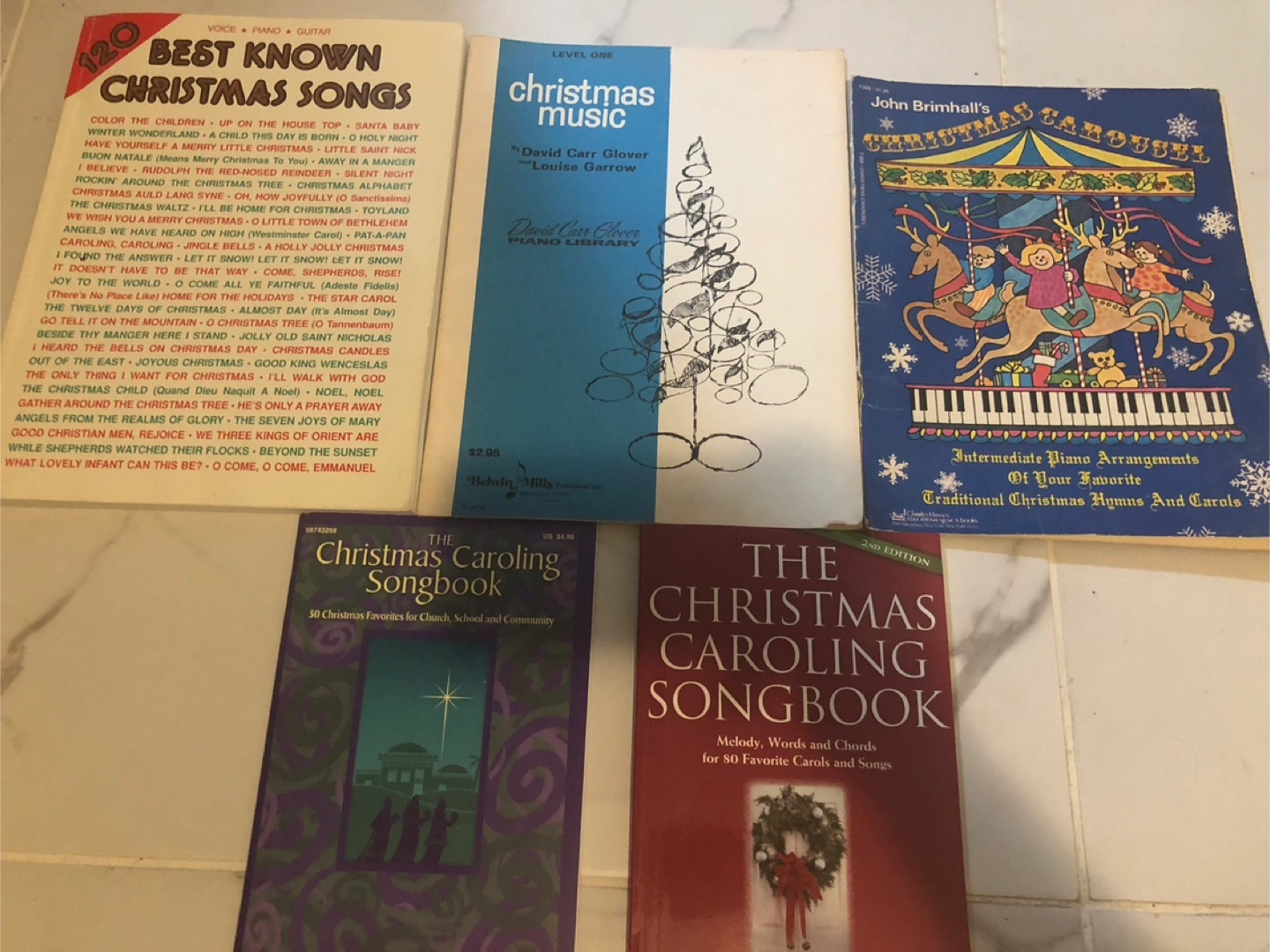 Includes various Christmas songbooks for piano and voice. $5 each or all for $20.