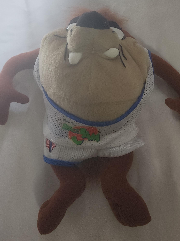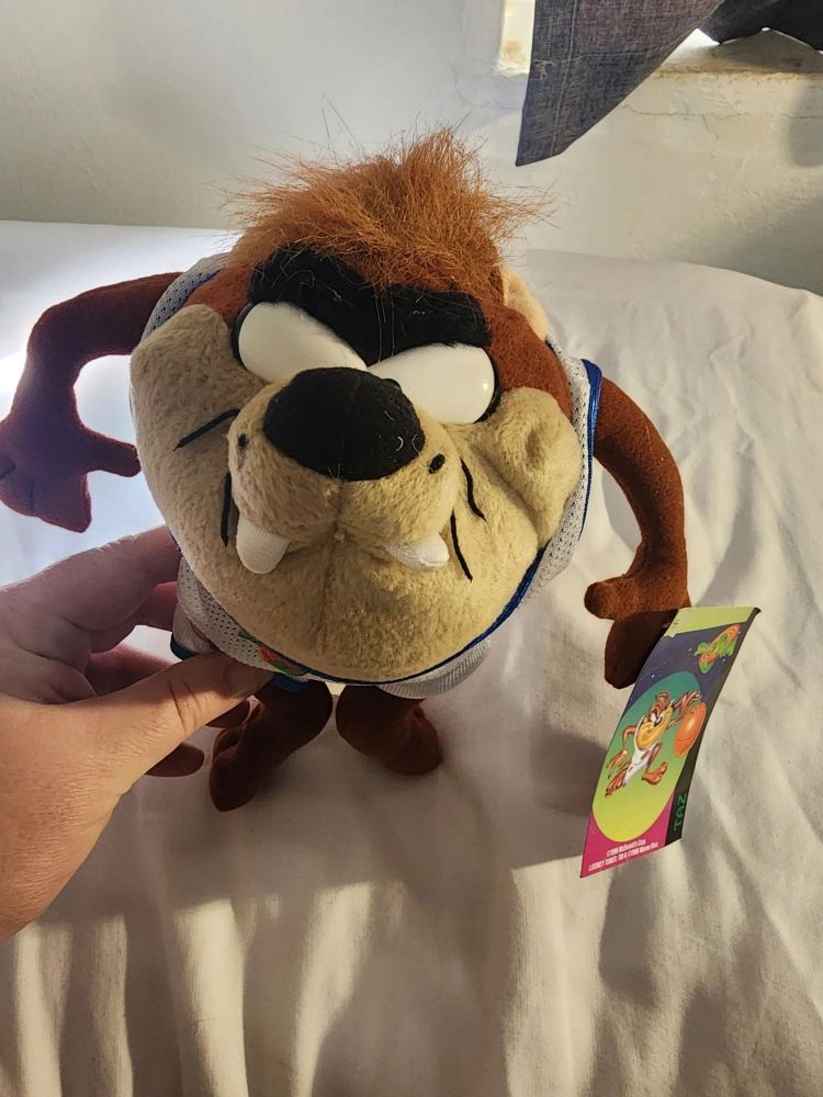 This is a vintage Taz plush toy from Space Jam! It's in great condition and comes with the original tag. A great collectible for any Looney Tunes fan. 1996, McDonald's/Warner Bros.