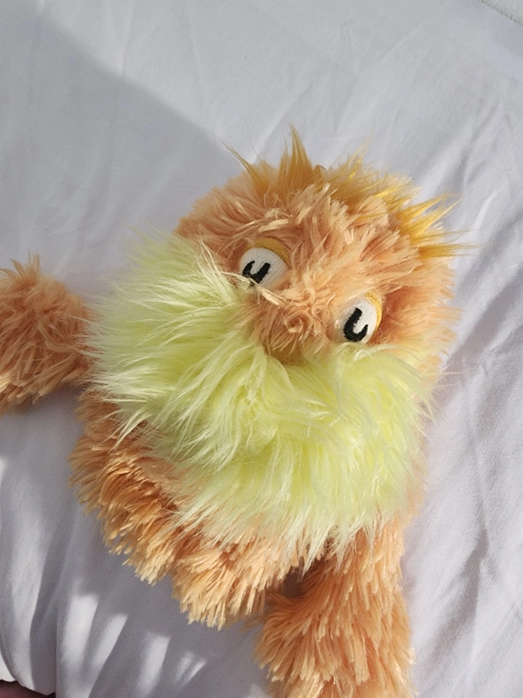 65This is a plush toy puppet of the Lorax! It's in good condition and ready for a new home. It's very soft and cuddly, perfect for any Dr. Seuss fan