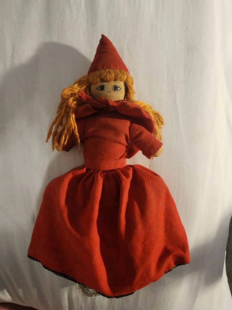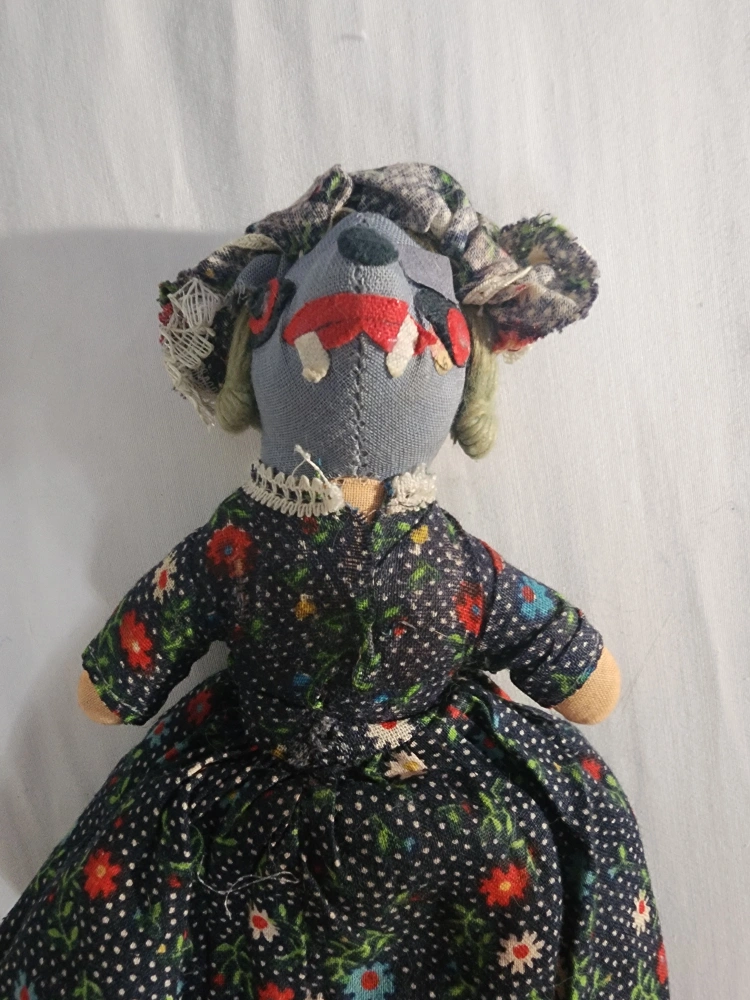 vintage reversible puppet. from 1980s. Little Red Riding Hood, turns over into grandma, who turns into the wolf. (pictured)