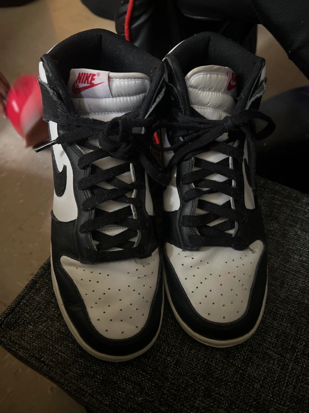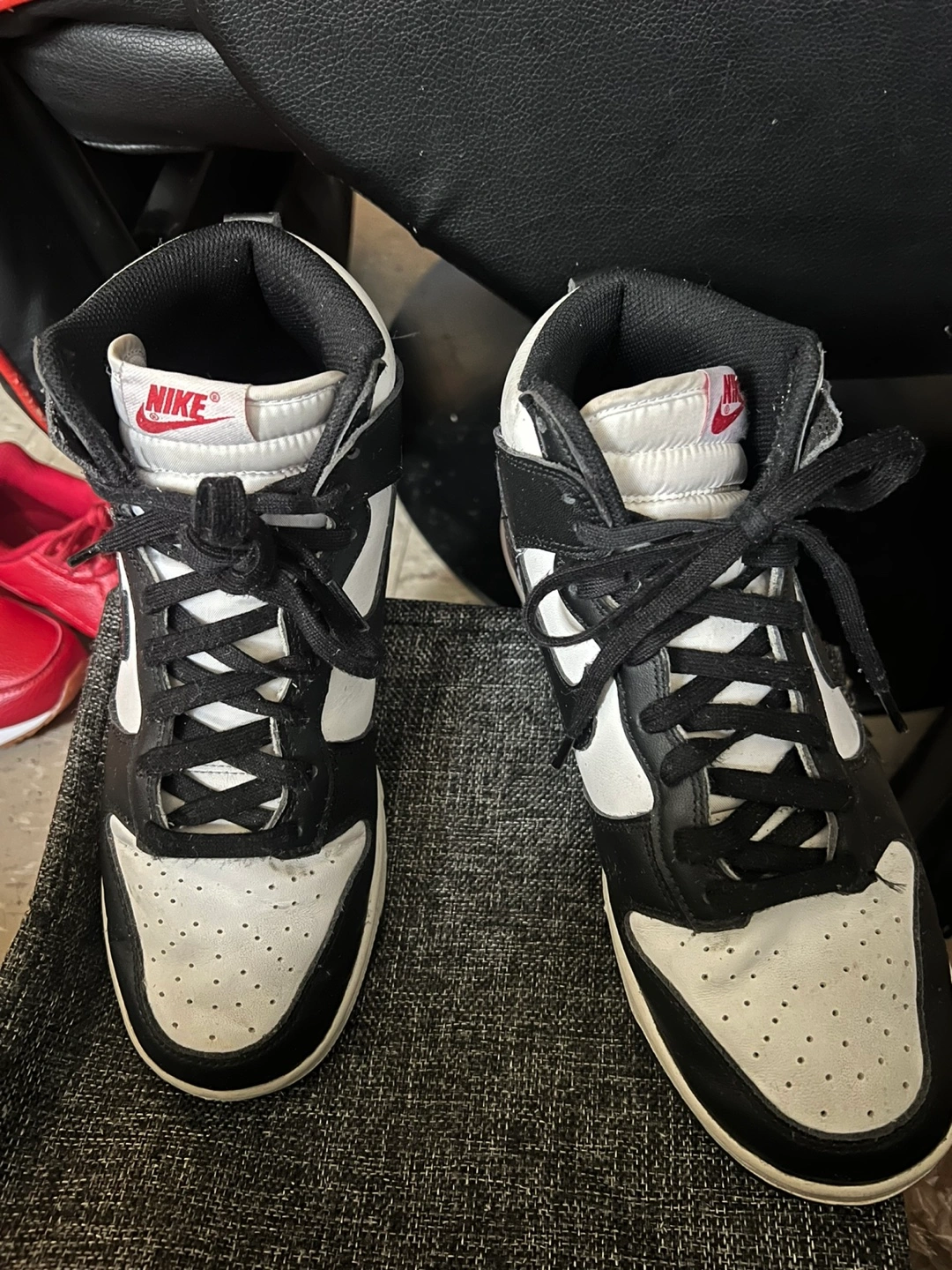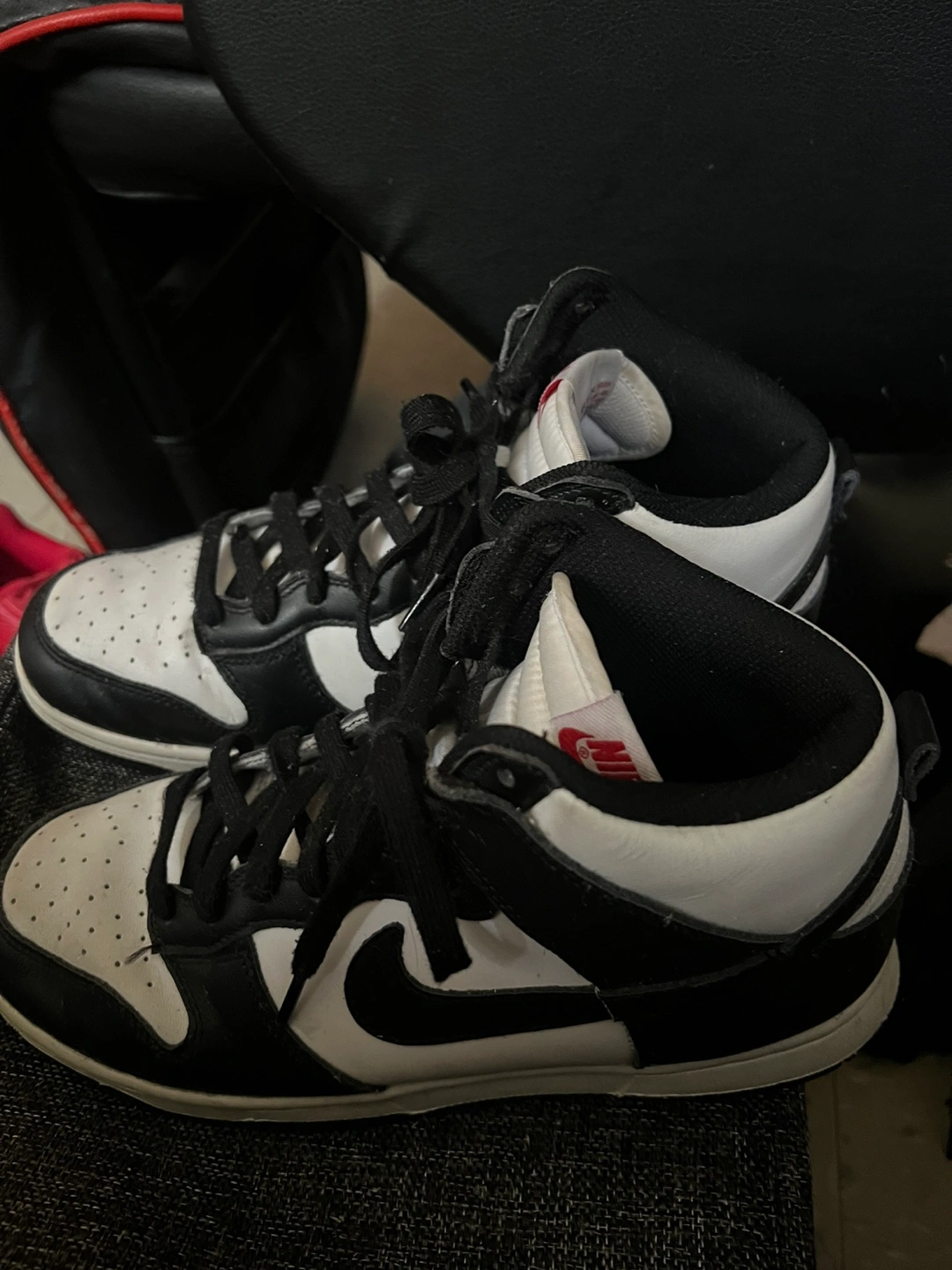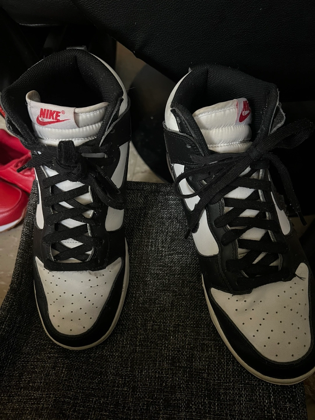 Selling a pair of Nike Dunk Highs in the classic black and white colorway! They show some signs of wear but still have plenty of life left. Perfect for everyday wear or adding to your sneaker collection