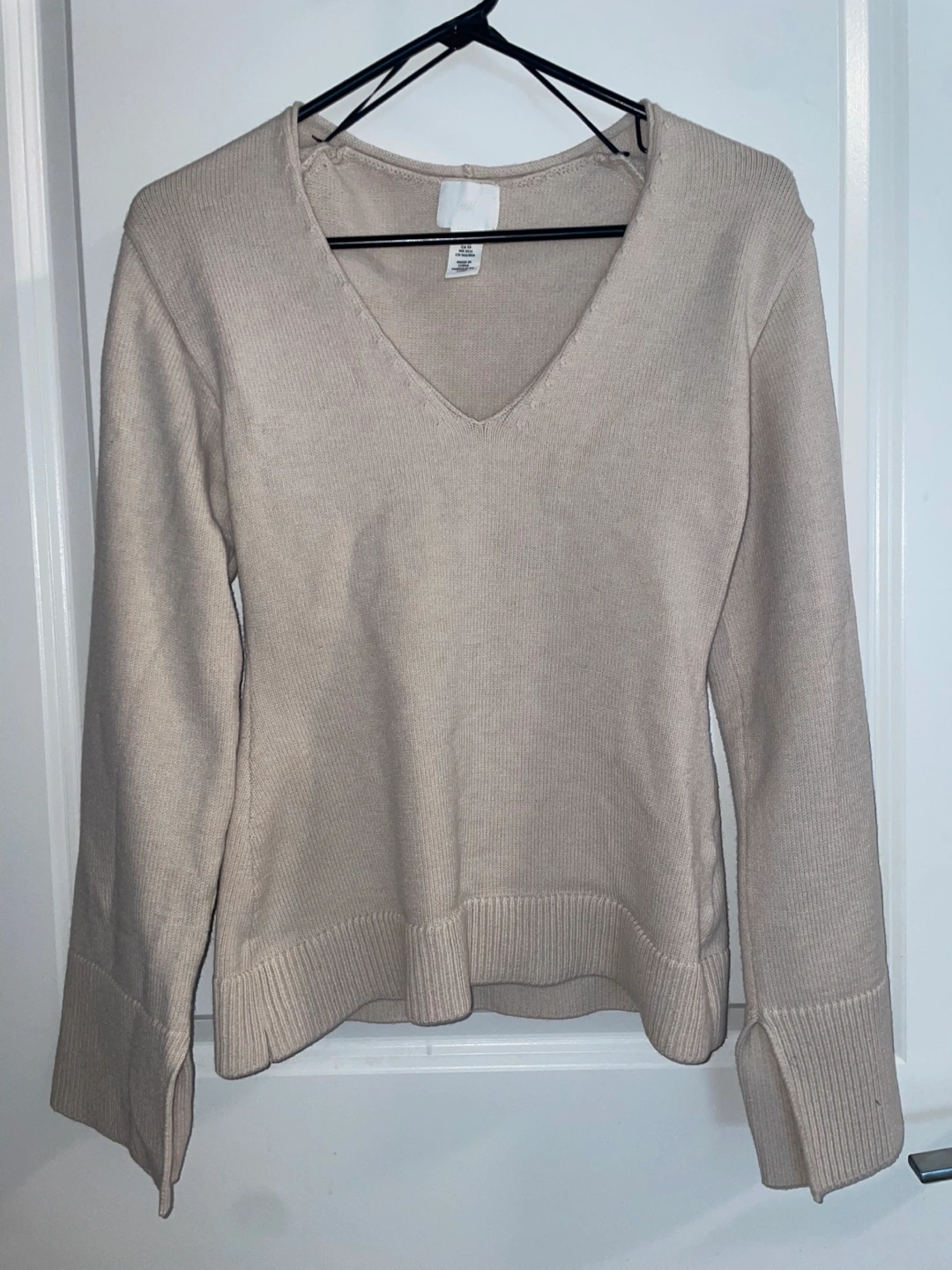 Selling an H&M beige V-neck sweater. It's a size XS/S and in great condition. Perfect for layering or wearing on its own!