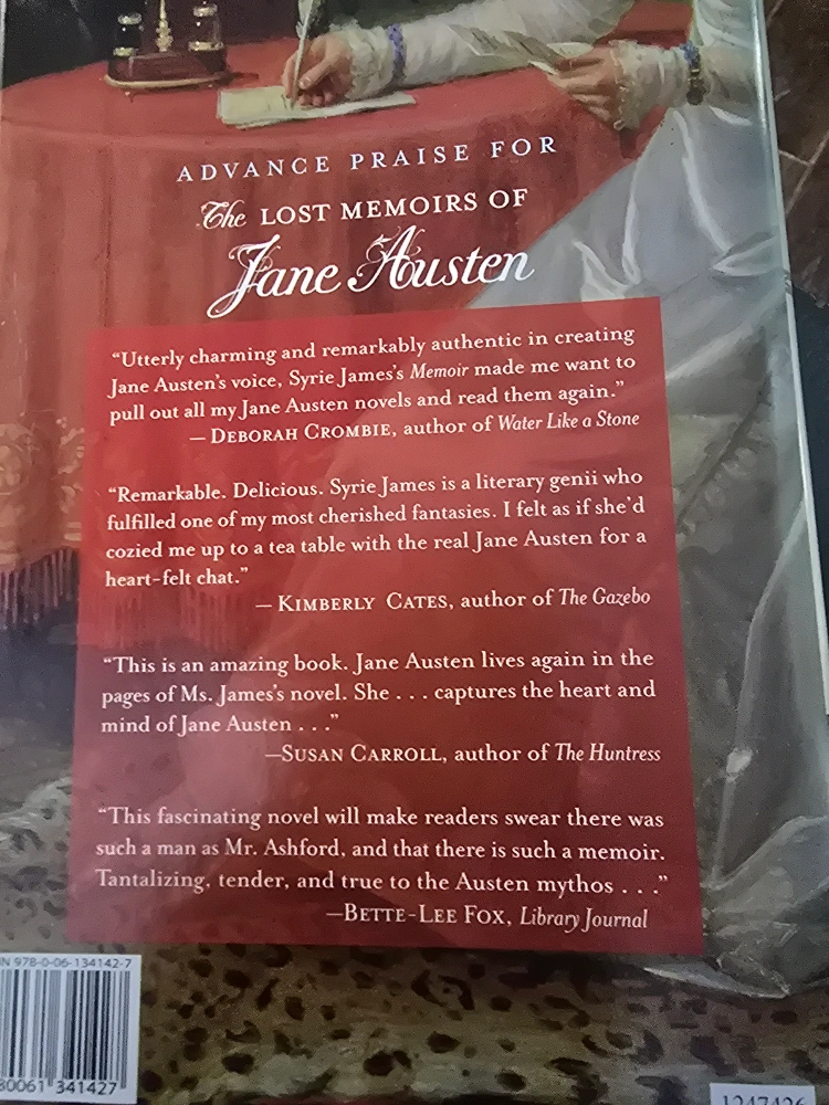 Selling a copy of "The Lost Memoirs of Jane Austen"! It's a captivating read that offers a unique perspective on a beloved author. The book has received advance praise from Deborah Crombie, Kimberly Cates, Susan Carroll, and Bette-Lee Fox.