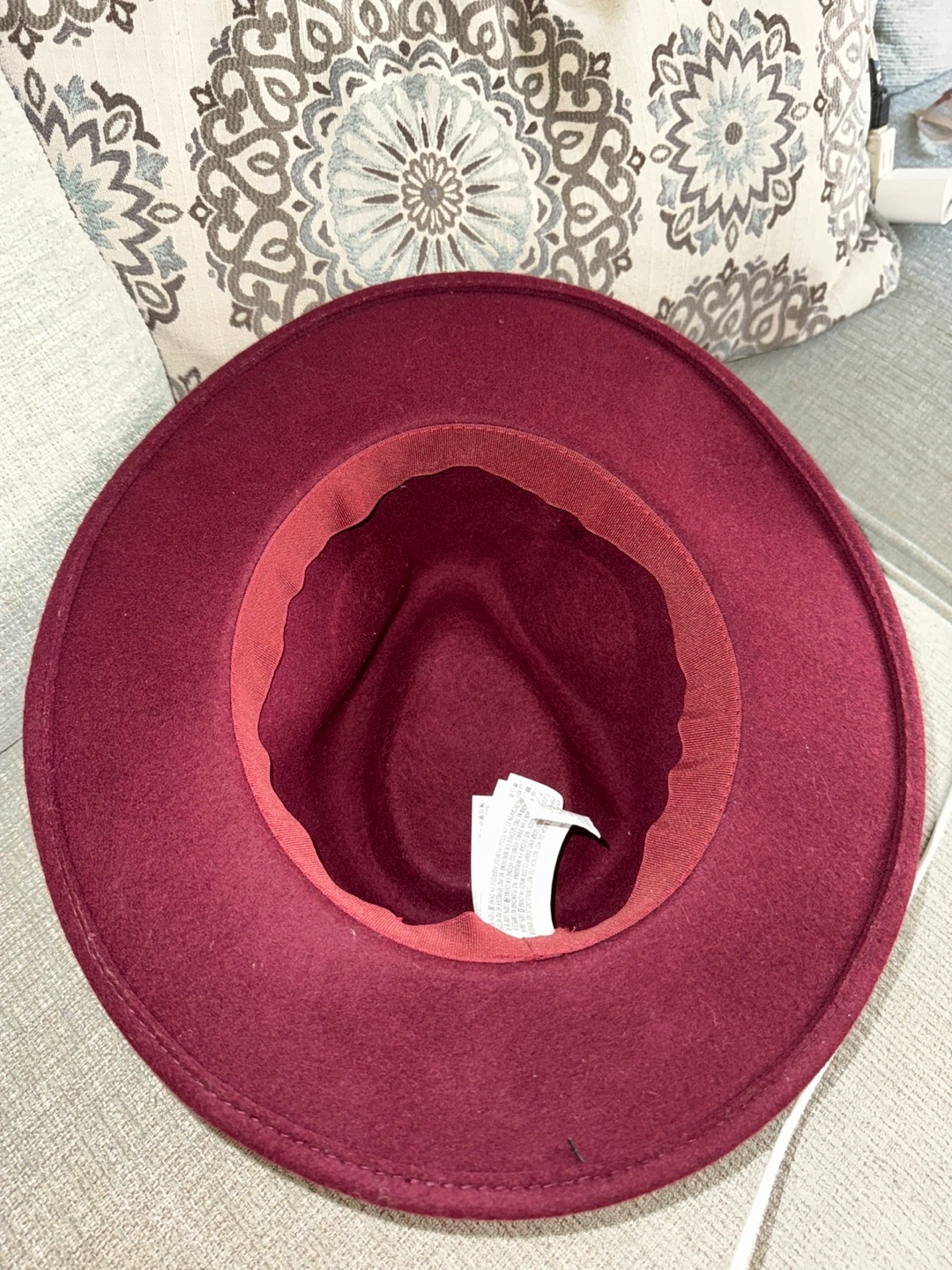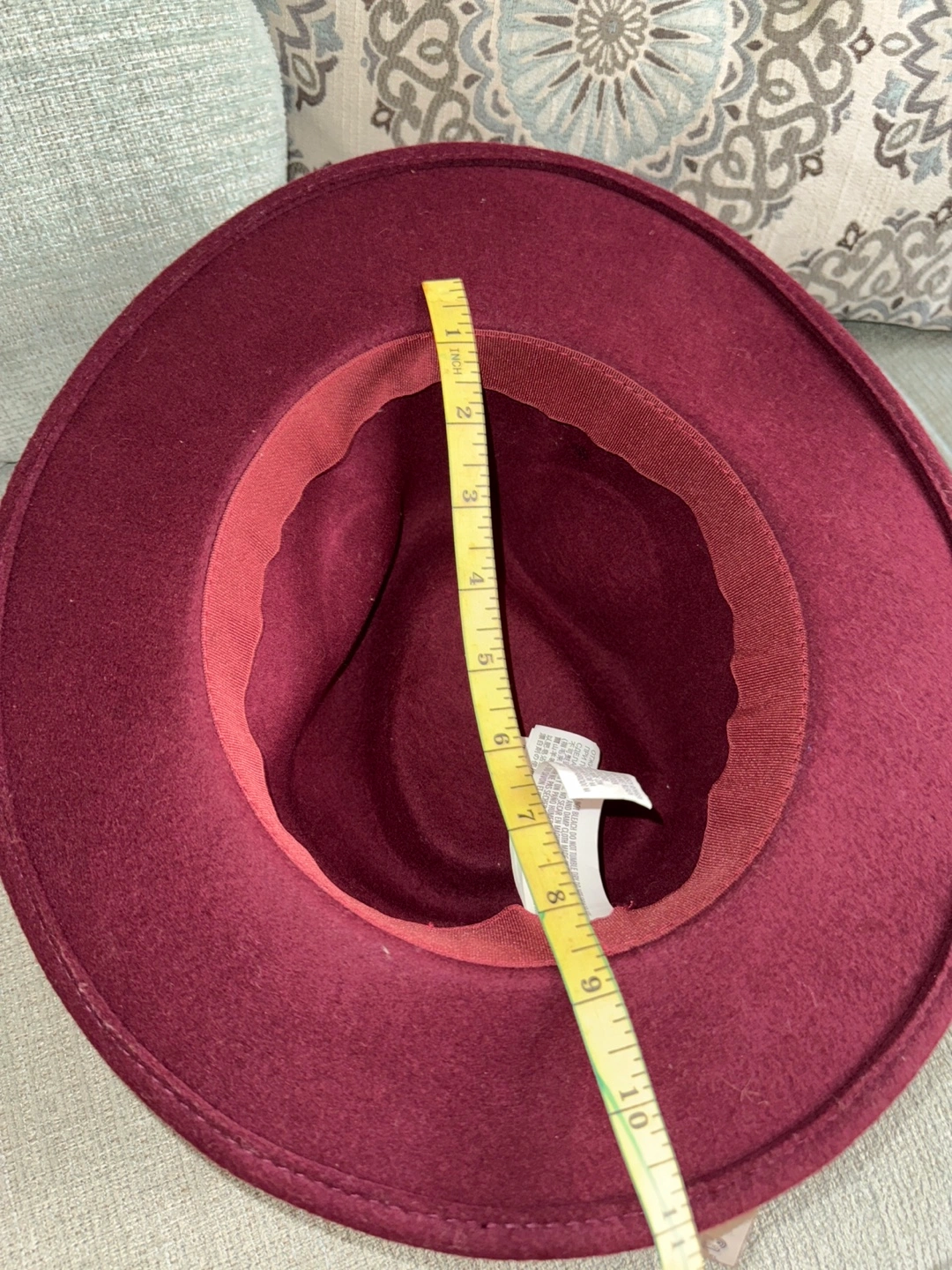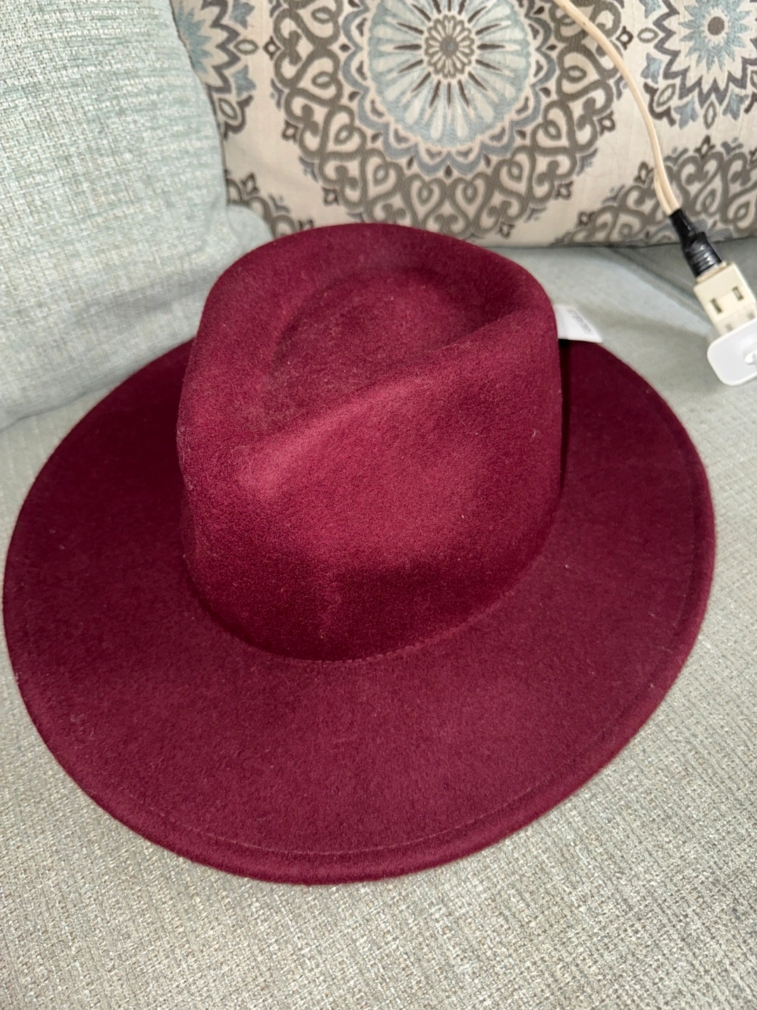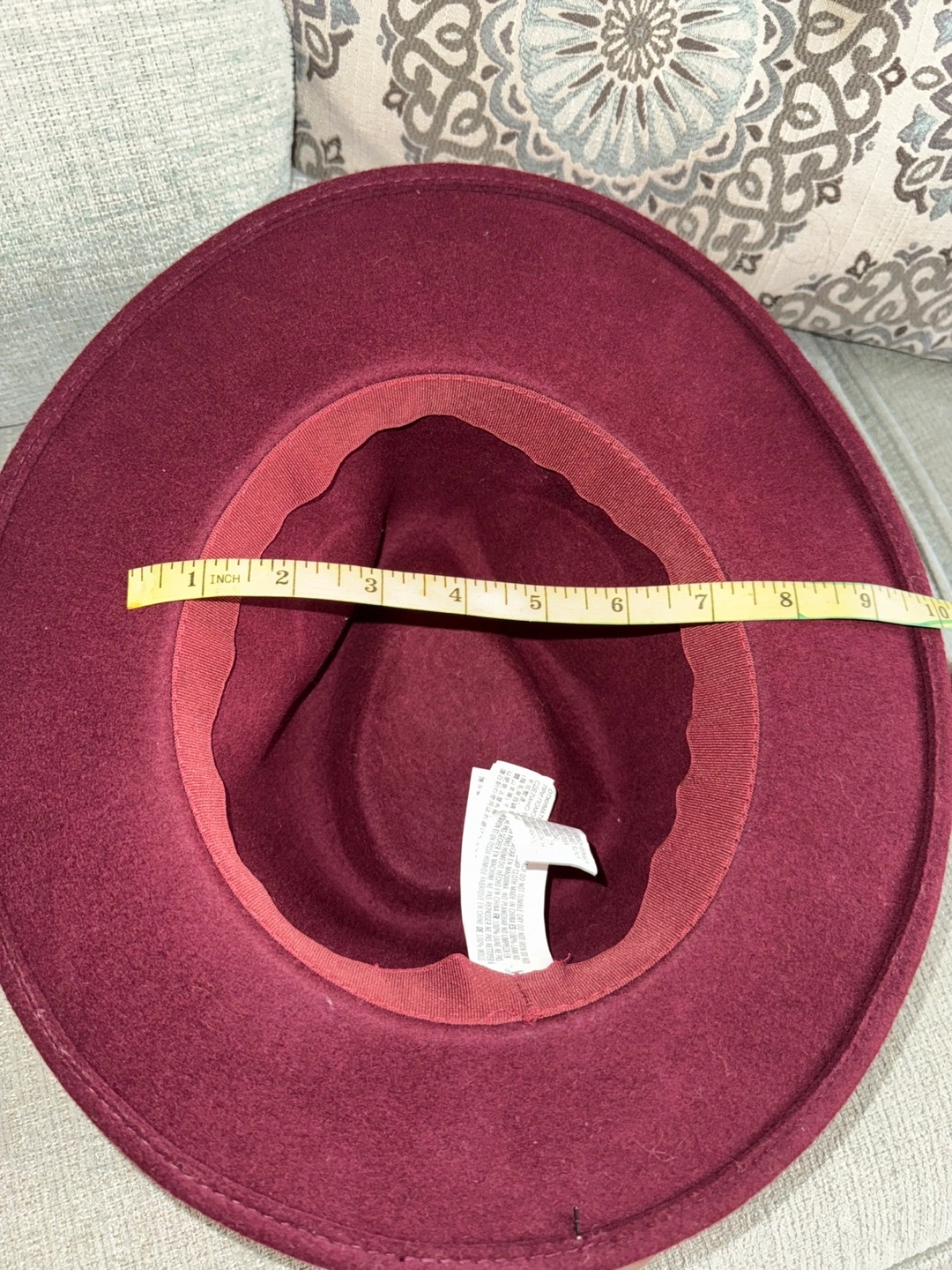 Selling a stylish burgundy fedora from Forever 21! It's in great shape and measures about 11 inches across the brim. Perfect for adding a touch of flair to any outfit. The size is approximately 7 1/4