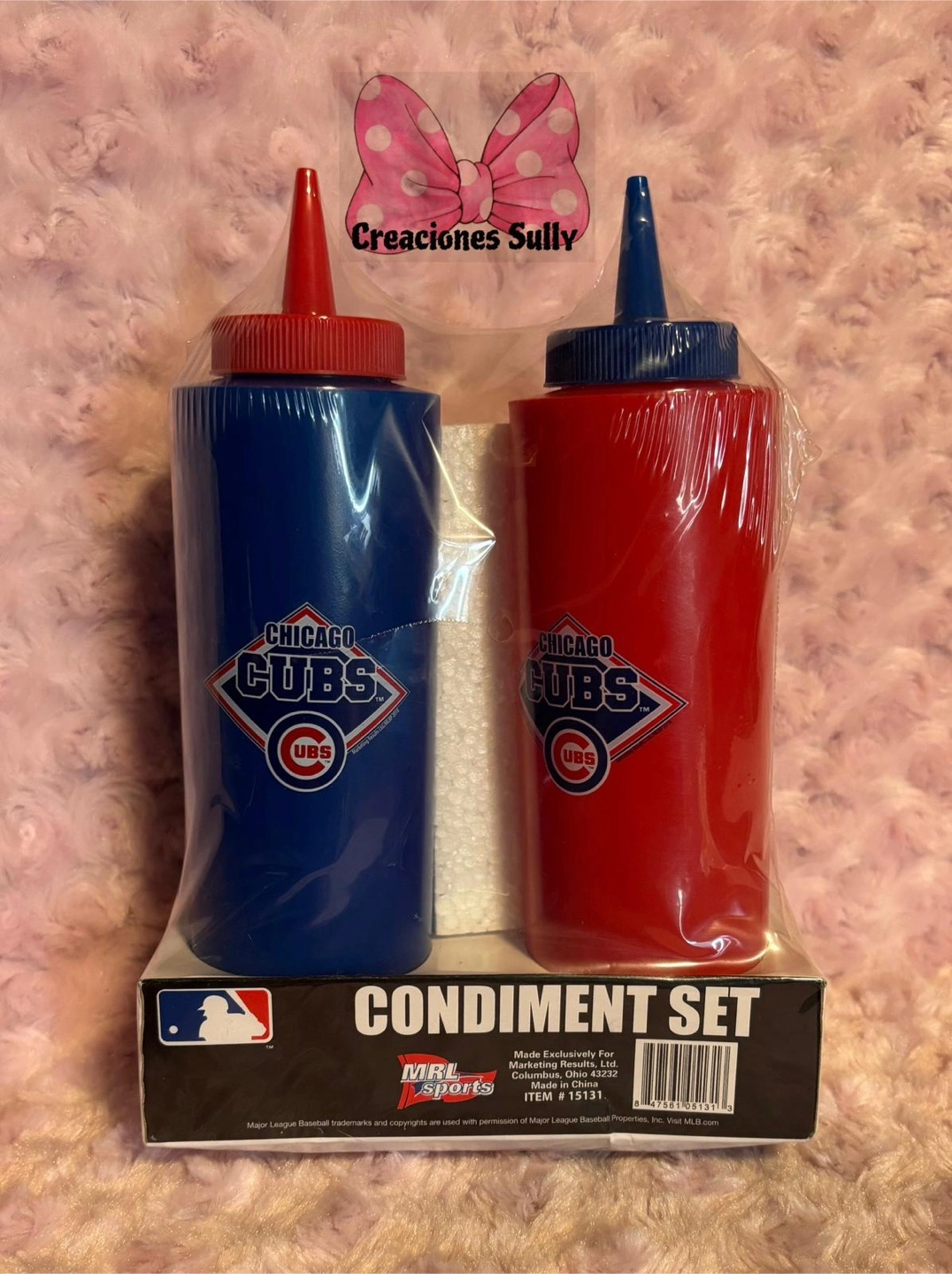 I'm selling a brand new Chicago Cubs condiment set! It comes with two squeeze bottles, one in blue and one in red. The set is made exclusively for Marketing Results, Ltd. and is item #15131.