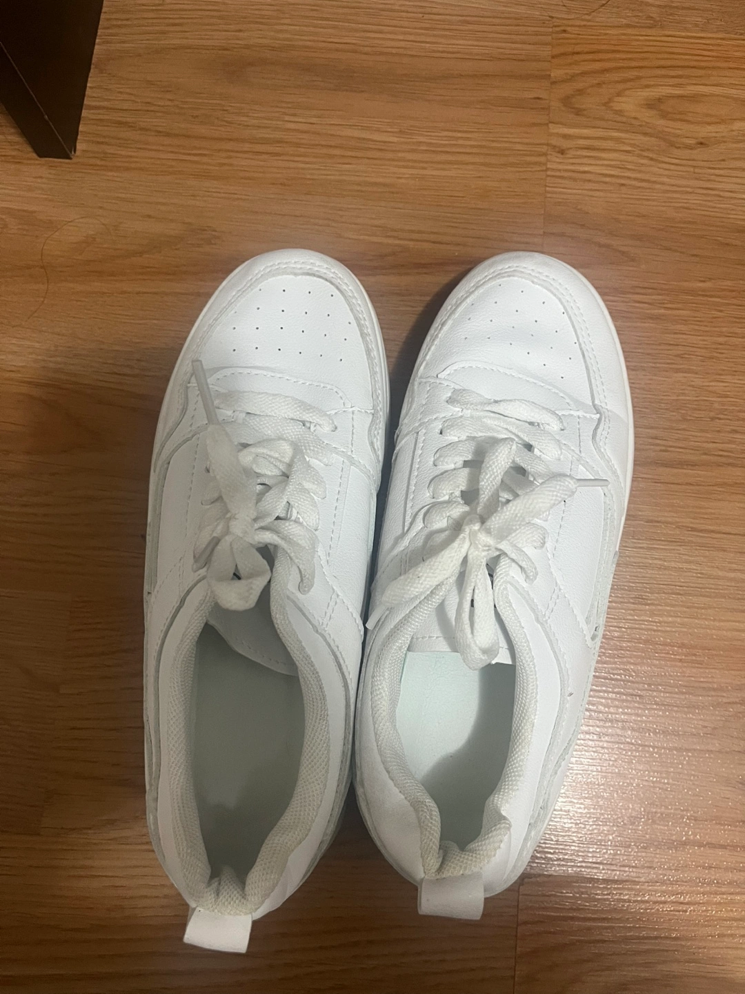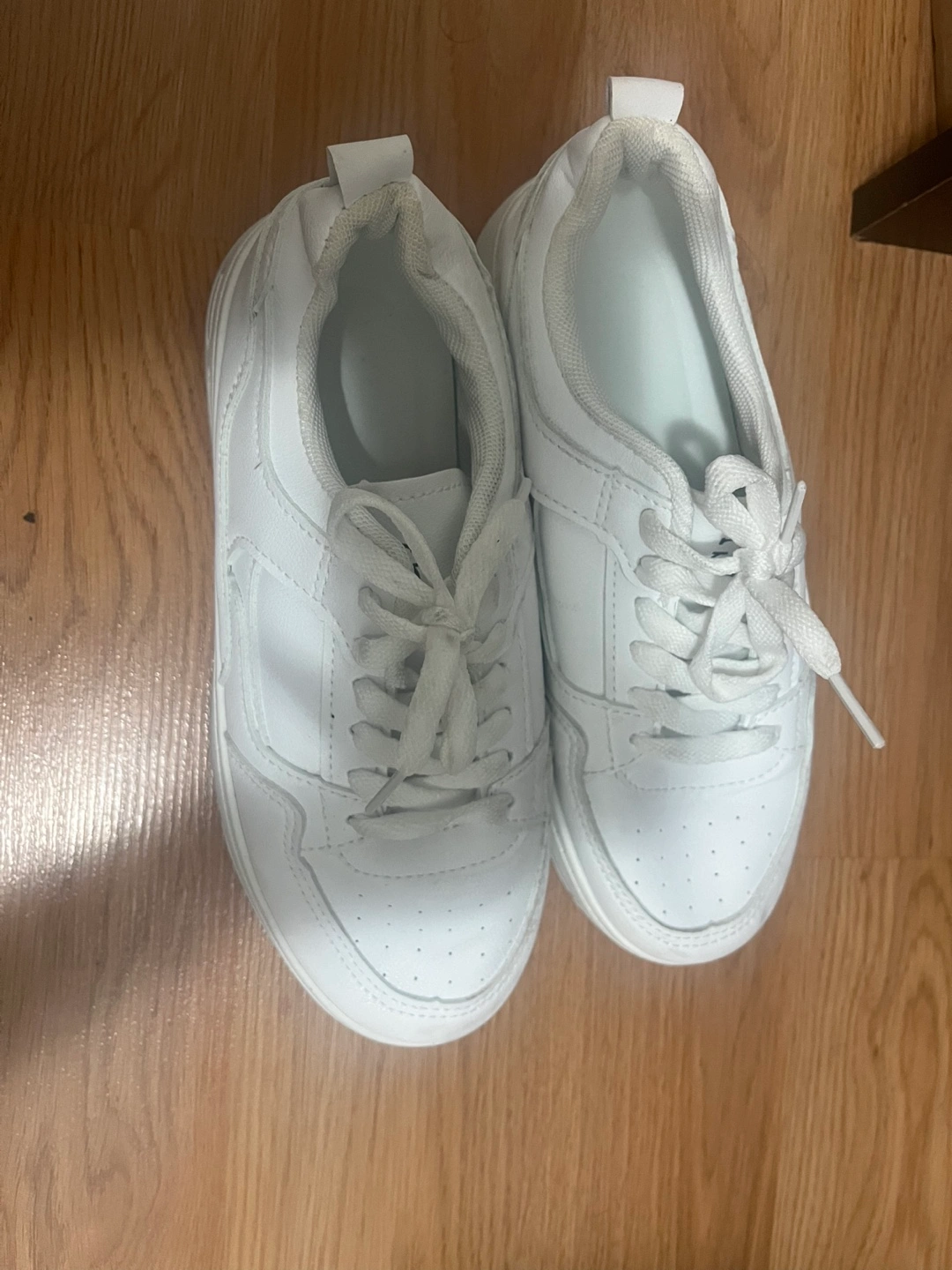 670Selling a pair of white sneakers. They appear to be in good condition with laces. Perfect for everyday womens wear!