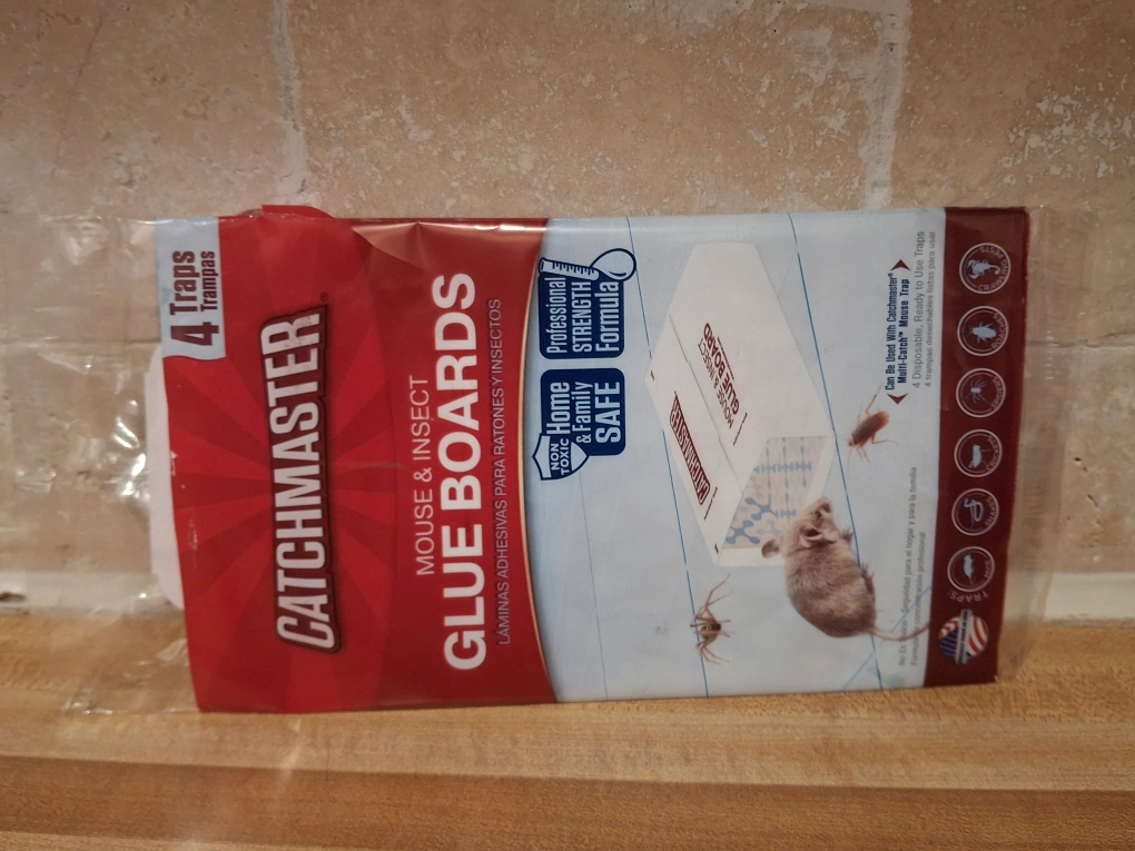 Selling a pack of Catchmaster Mouse & Insect Glue Boards. The package contains 4 traps. These glue boards are designed for home and family use with professional strength formula to catch mice and insects.