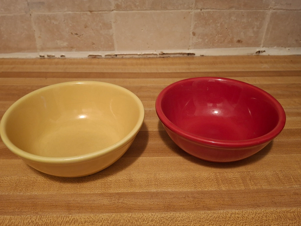 Selling two ceramic bowls, one yellow and one red. They're in great shape and perfect for everyday use!