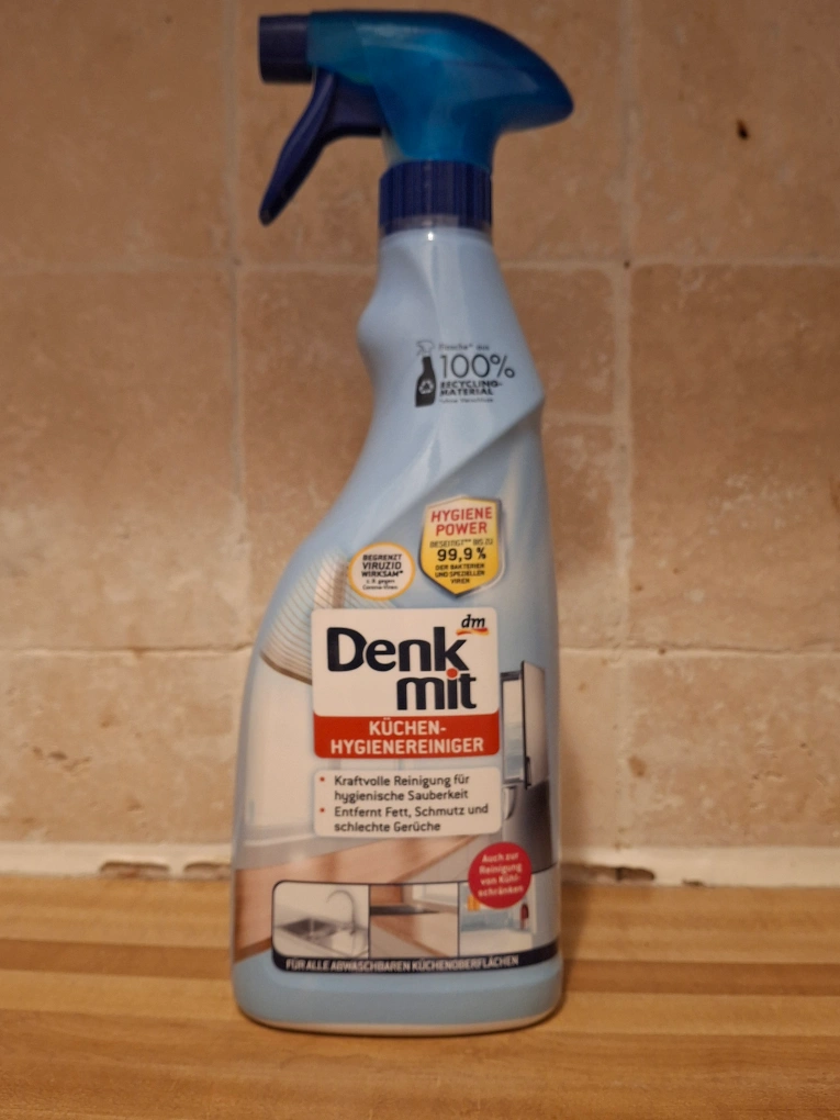 Selling Denk mit Küchen-Hygienereiniger. It has hygiene power and removes fat, dirt, and bad smells. It also cleans kitchen surfaces