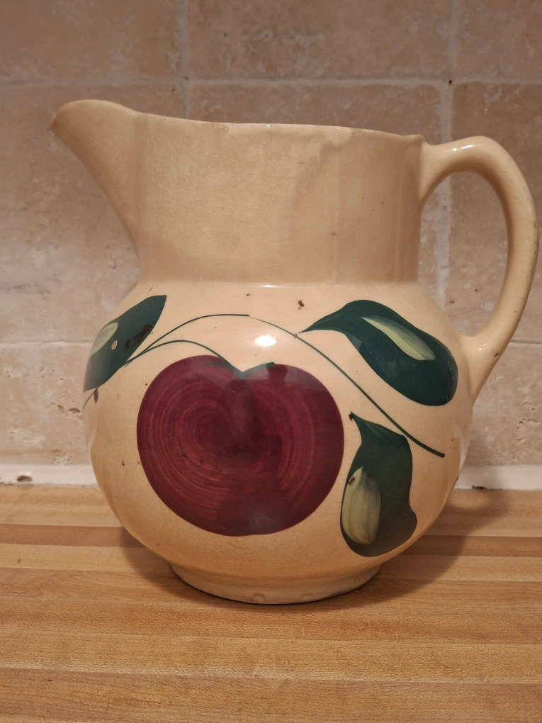 Here's a vintage pitcher with an apple design. It's perfect for serving drinks or as a decorative piece in your kitchen or dining area