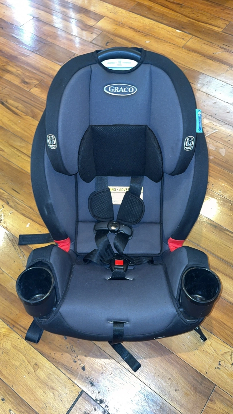 Selling a Graco car seat in good condition! It features a comfortable design with a headrest and harness. Also includes convenient cup holders on both sides