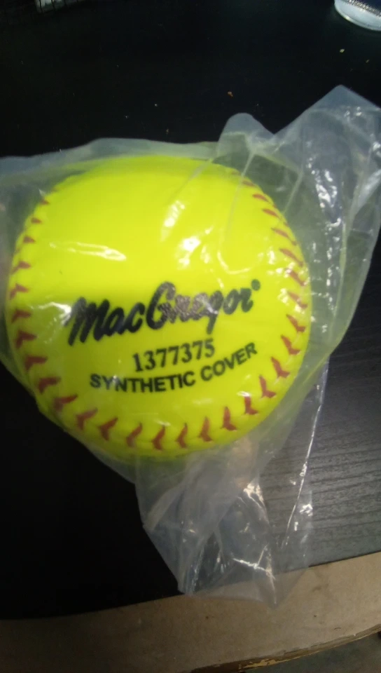 Selling a brand new MacGregor softball still in its original packaging! It's a bright yellow color and features a synthetic cover. Certified for USA Softball with a max 300 LBS and MAX .52 COR. Ready for your next game!