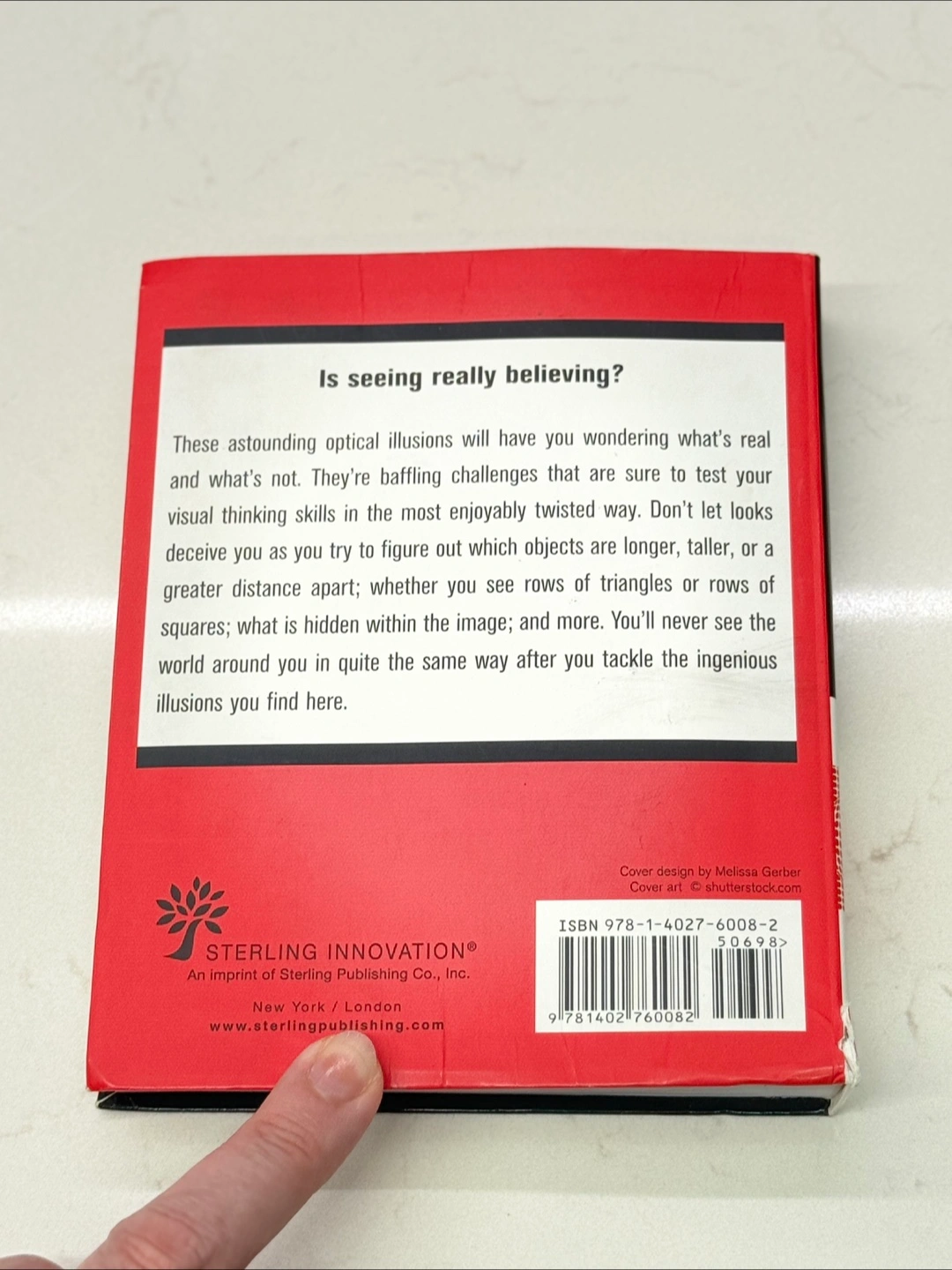 1000+Selling a book called Optical Illusions: Challenge Your Visual Thinking! It's a collection of astounding optical illusions that will have you wondering what's real and what's not. They're baffling challenges that are sure to test your visual thinking skills in the most enjoyably twisted way