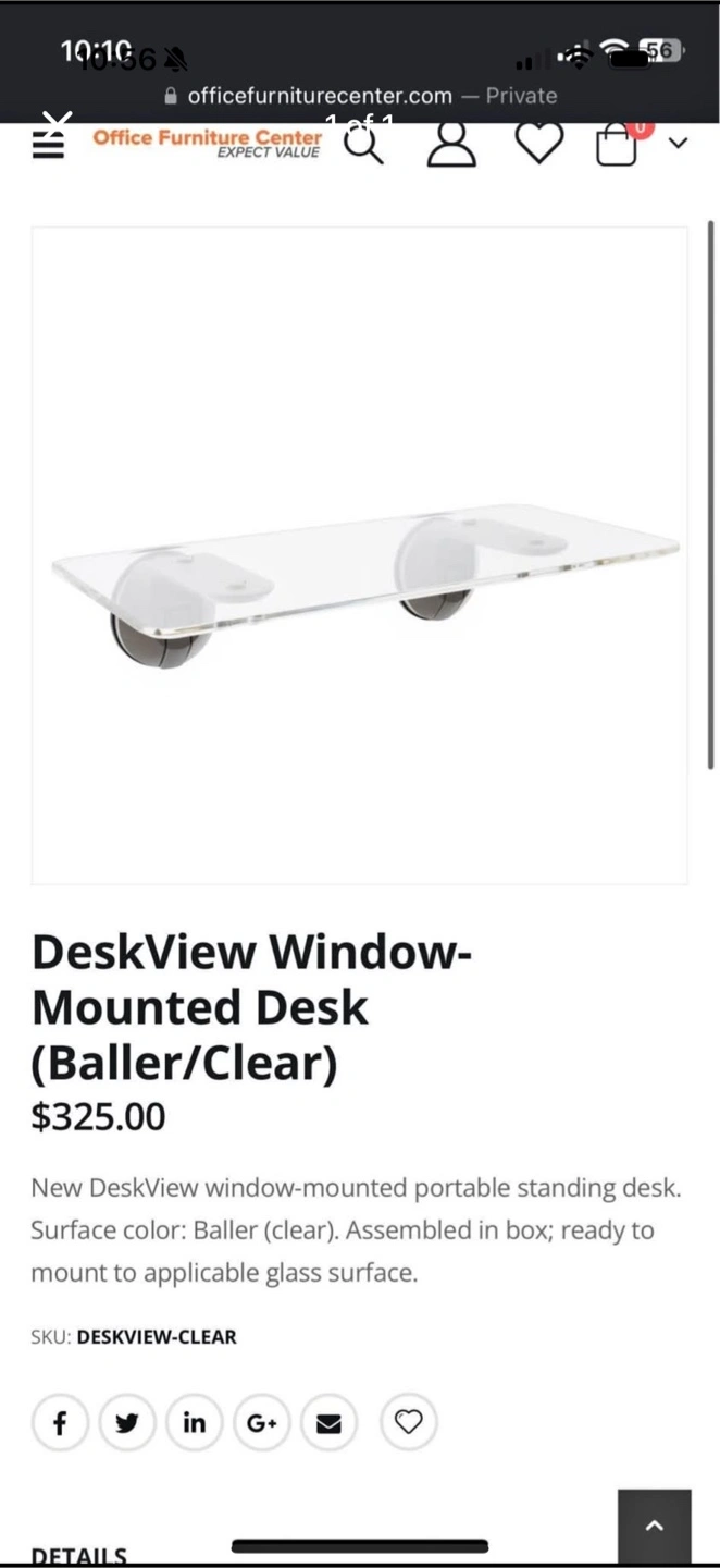 Originally $325. Selling a DeskView window-mounted portable standing desk! It's in its original box and ready to mount to any applicable glass surface. The surface color is Baller (clear), and the instruction manual is included