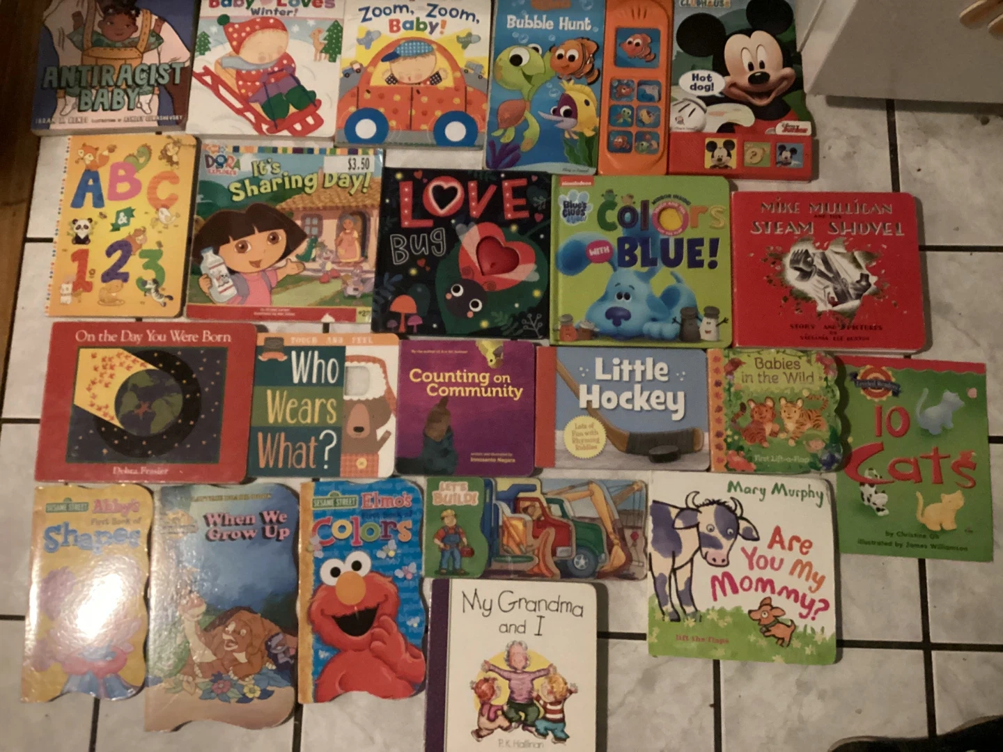 370Selling a collection of gently used kids' books! Great for toddlers and young children. Includes titles like: - Dora It's Sharing Day! - Elmo's Colors - Blue's Clues Colors with Blue! - Antiracist Baby - And many more fun stories! Music ones work but need new batteries.