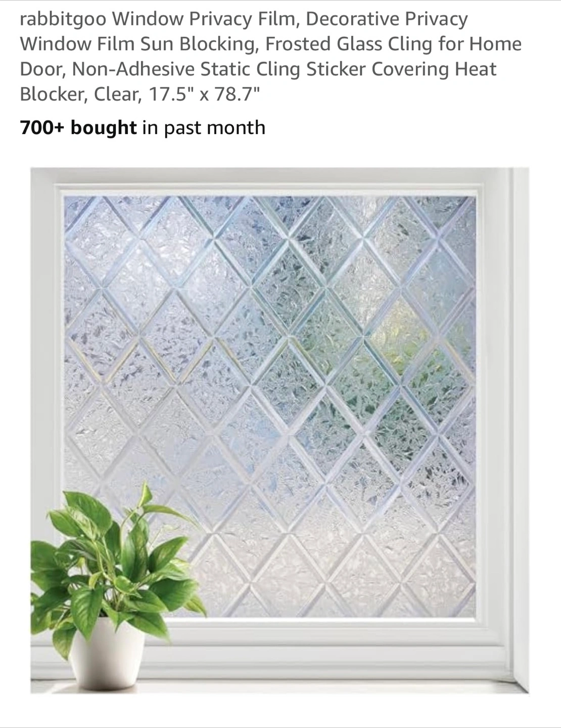 Window Privacy Film 17.5" x 78.7"