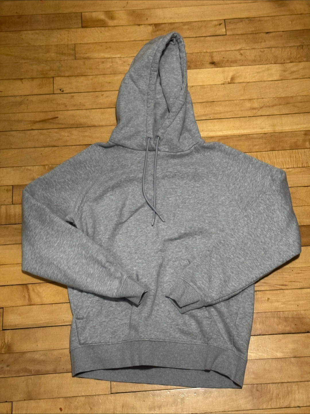 Selling a gray hoodie. It's in good condition and ready for a new home! It's a classic and comfortable piece to add to your wardrobe.
