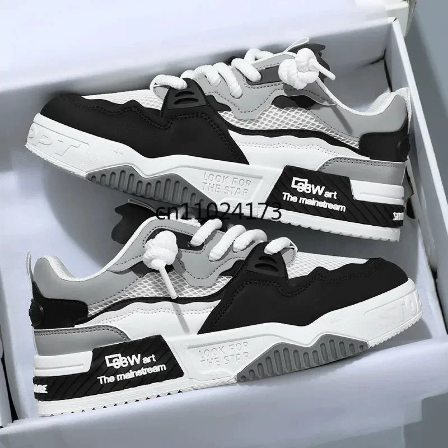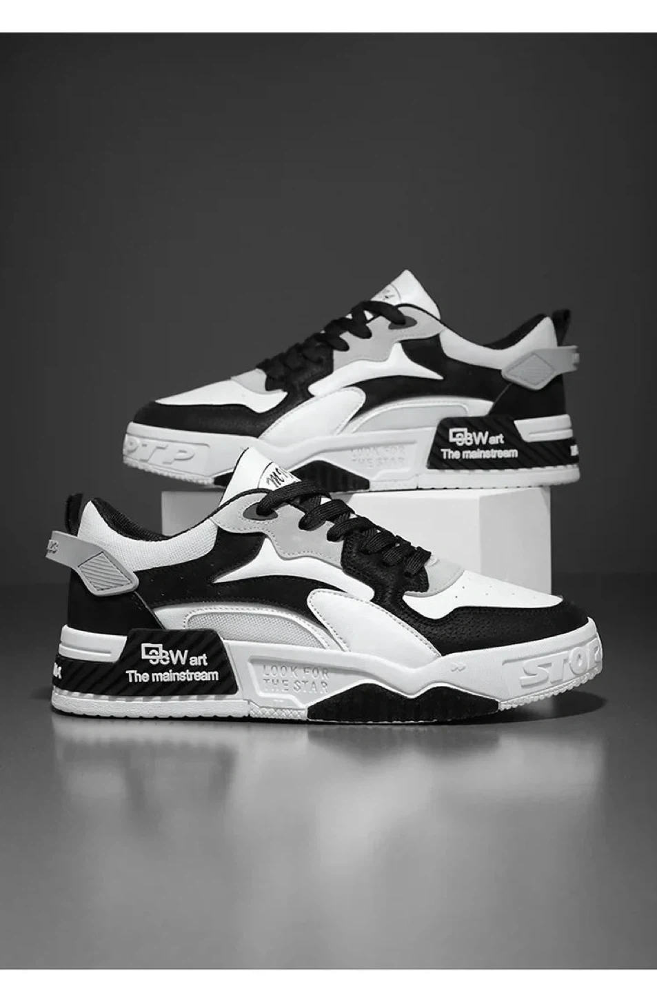 These GBWart "The Mainstream" sneakers come in a black, white, and gray colorway. They feature a durable construction with a "Look for the Star" detail. Lace-up closure for a secure fit. Primeboxofficial.com