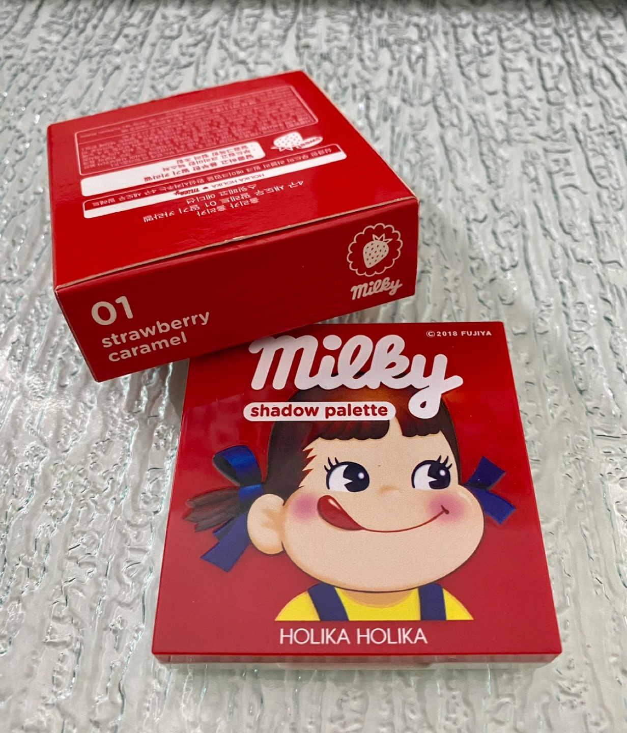 Description from the original manufacturer: This eyeshadow palette houses four rich shades with matte, shimmering, and glittering finishes. The buildable texture applies smoothly and offers a high color payoff that lasts. This limited edition features the Japanese character Peko.