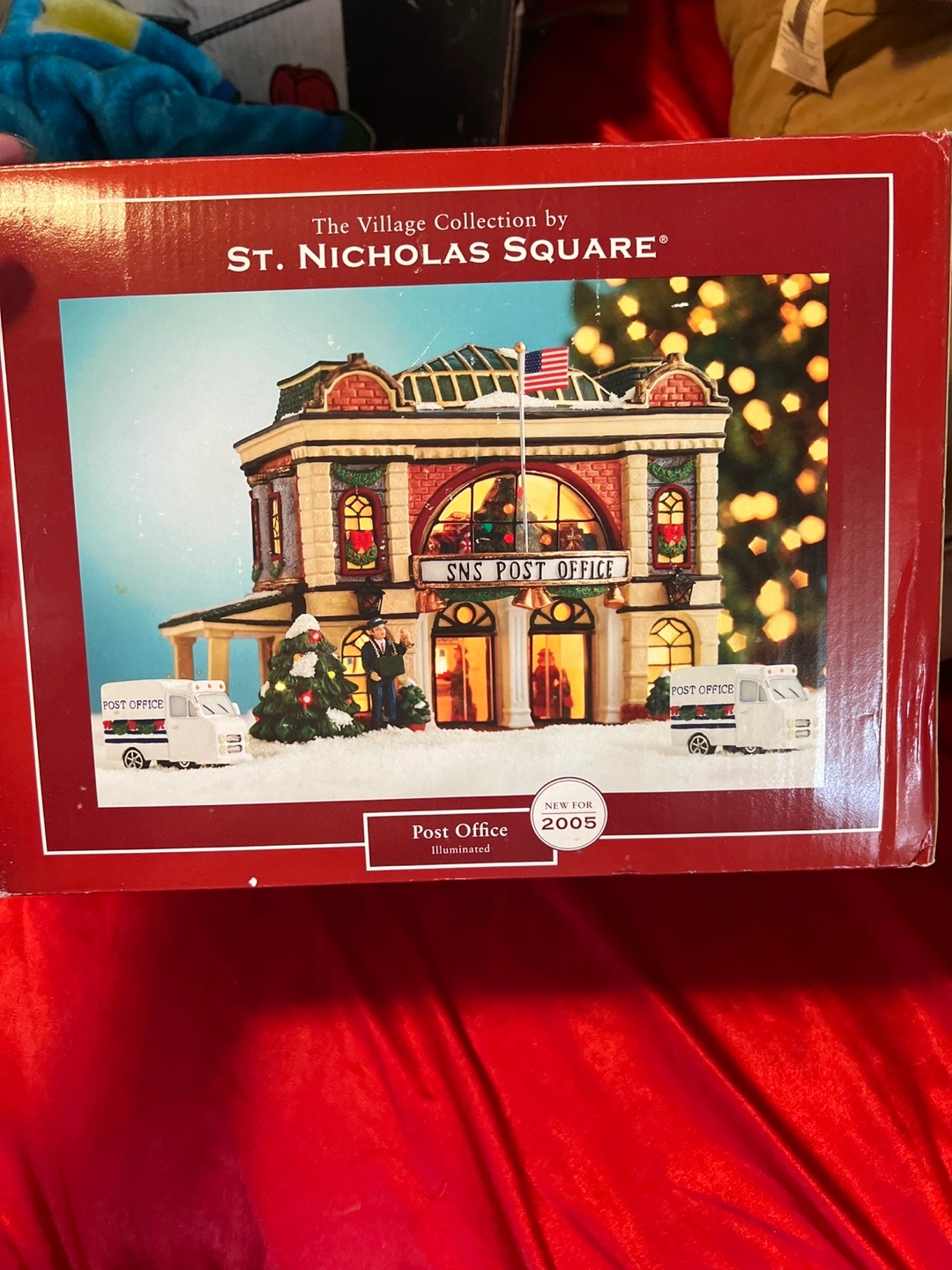 Selling a St. Nicholas Square "SNS Post Office" illuminated figurine from The Village Collection. It's like new from 2005 and comes with the original box. Handpainted with attention to color and detail to add personality and charm to your village setting, plus I have plenty more house & village accessories for sale