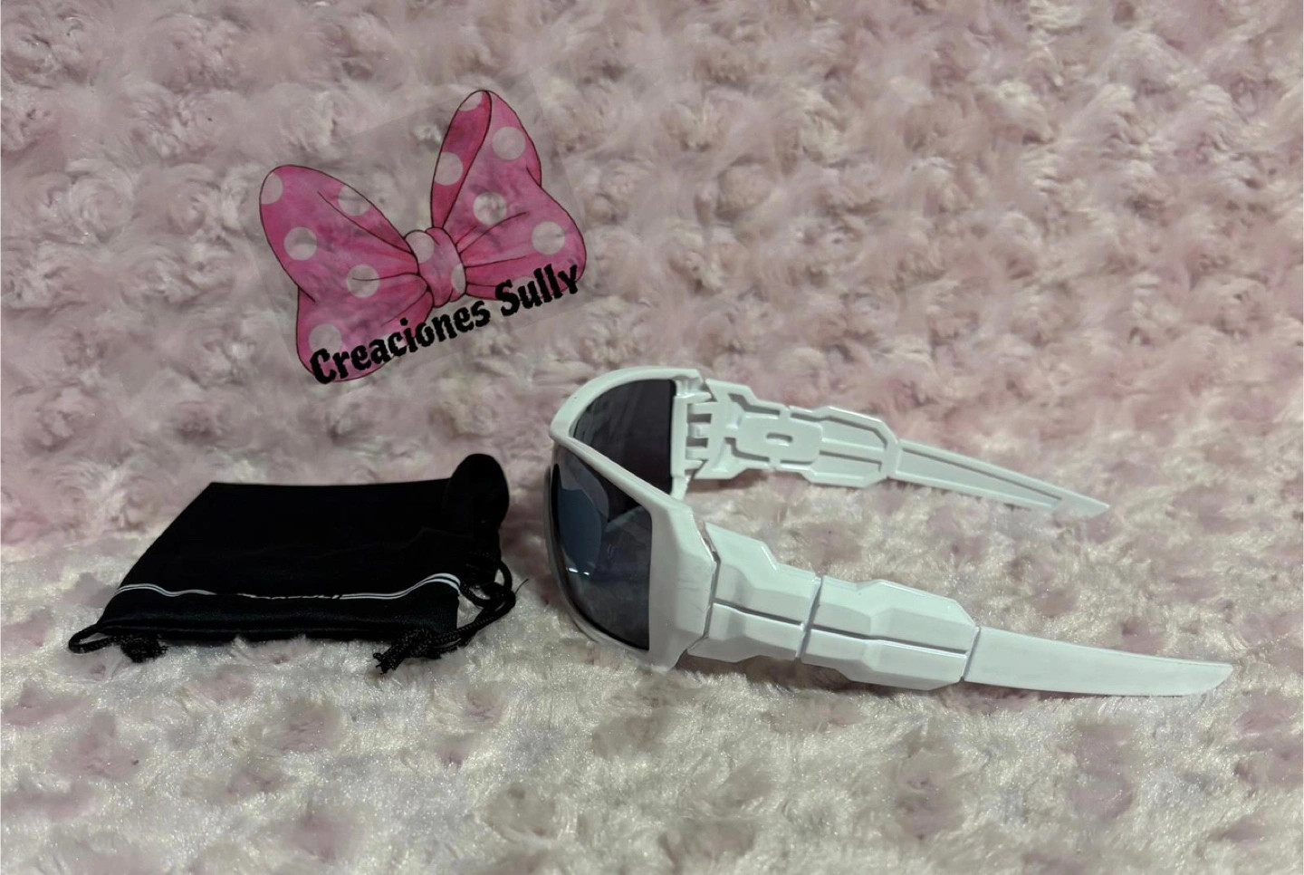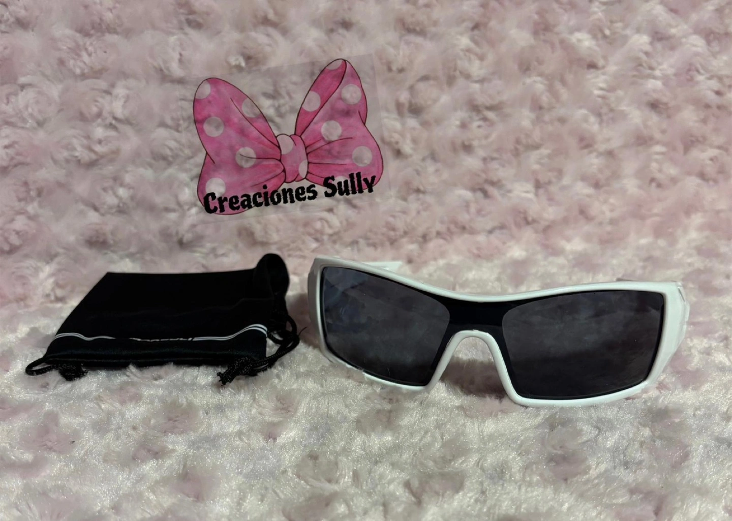 Selling a pair of white Oakley sunglasses. They come with a black carrying pouch to keep them safe when you're not wearing them. These sunglasses are perfect for adding a stylish touch to any outfit!