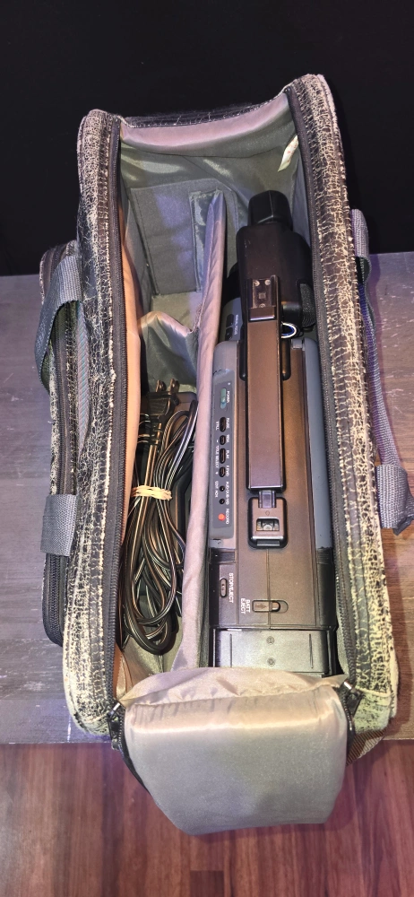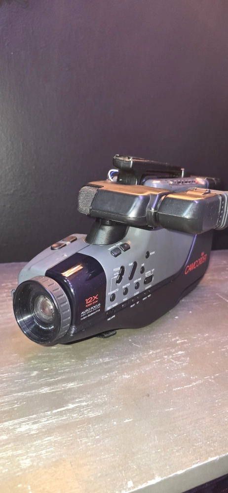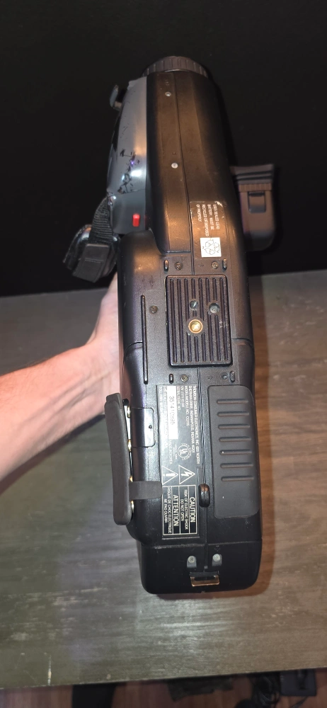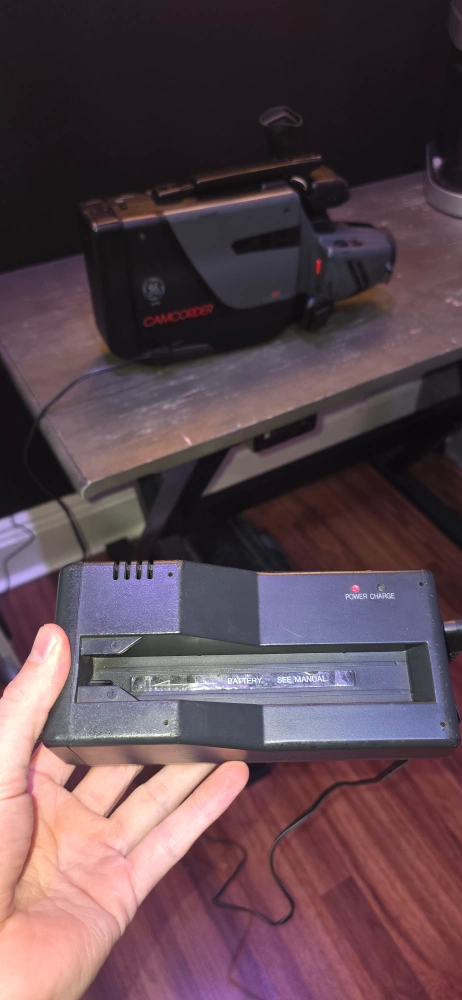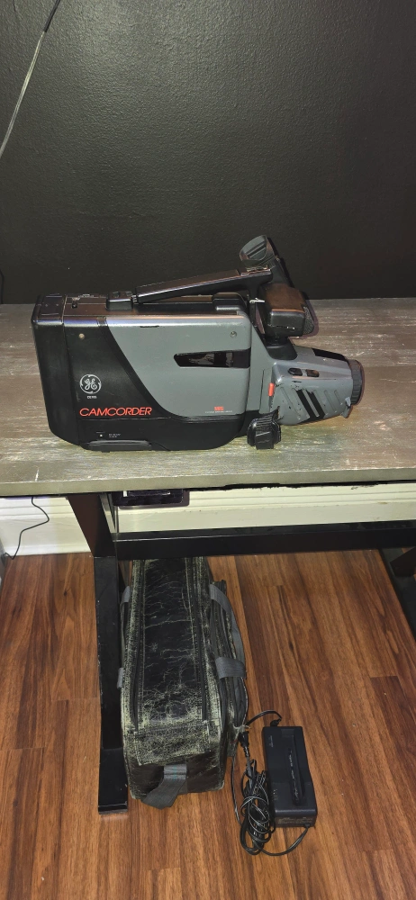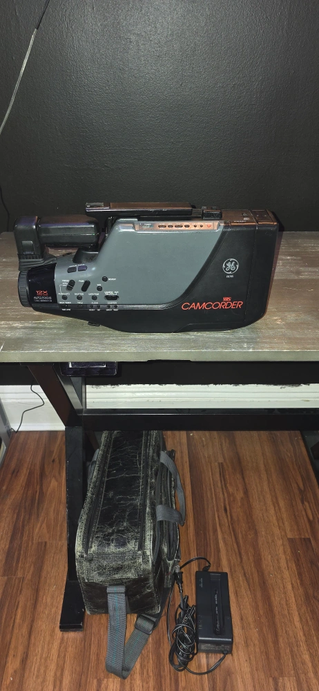 Pickup In Astoria As-Is, if you have a replacement battery and want to turn it on, bring it with you. Late 1980s Vintage General Electric CG705 full‑size VHS camcorder. GE/RCA design with 12x power zoom, black‑and‑white EVF, and composite AV output. Would be able to be powered from the included AC adapter/charger; original 12V battery is NOT included, and I want able to. Compatible 12V replacement batteries for CG‑705 are readily available (12V, ~2Ah “brick” style). Condition: Camcorder shows wear from age. Top carry handle is broken at one end (see photos) which can be repaired. Bag is heavily worn on the exterior. Battery is missing. AC adapter/charger and power cord included. All buttons/switches untested because I couldn't power it on. Sold as‑is, no returns, due to vintage electronics. What’s included: GE CG705 camcorder body GE AC adapter/charger with cable (no battery) Original shoulder bag Notes: Replacement CG‑705 batteries are 12V brick packs if the next owner prefers cordless use. GE/RCA VHS models of this era can also operate from the AC adapter/charger and output composite video + mono audio for direct playback/capture. I tried and it didn't turn on but the adapter did receive power.