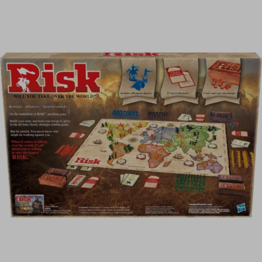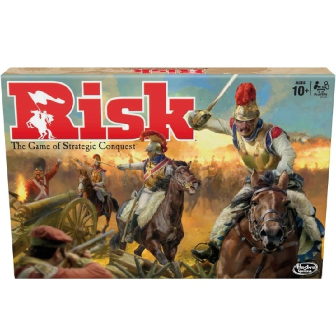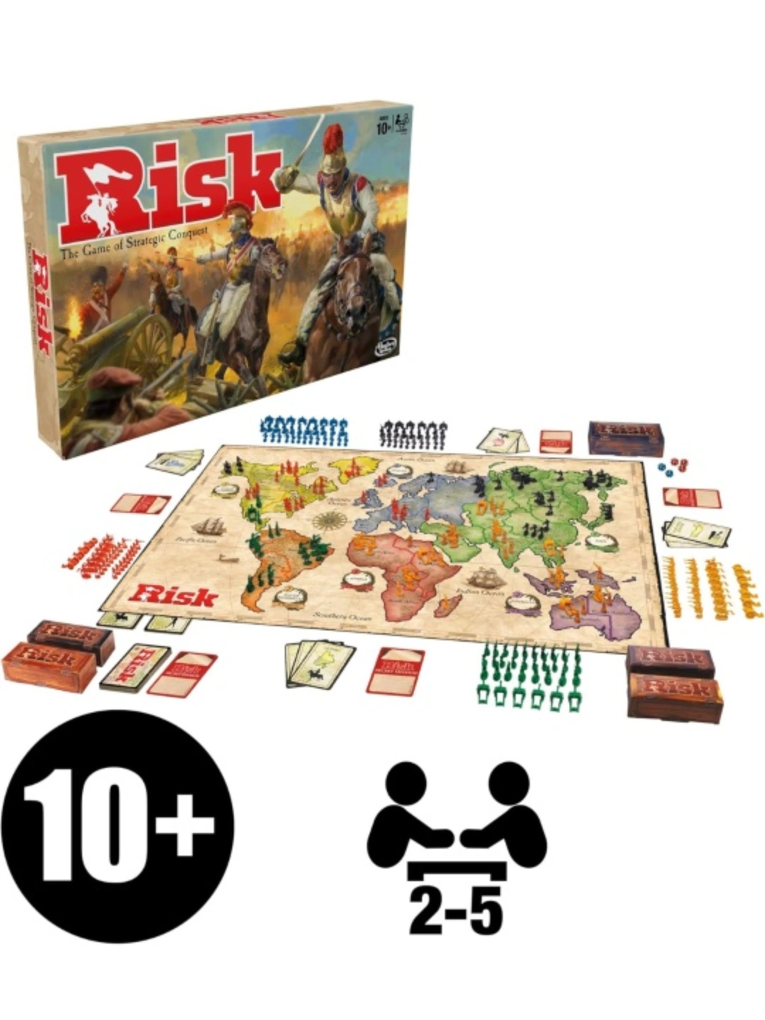 brand new, never used. Selling the classic board game, Risk! It's the Game of Strategic Conquest for ages 10 and up, perfect for 2-5 players. Includes everything you need to take over the world!