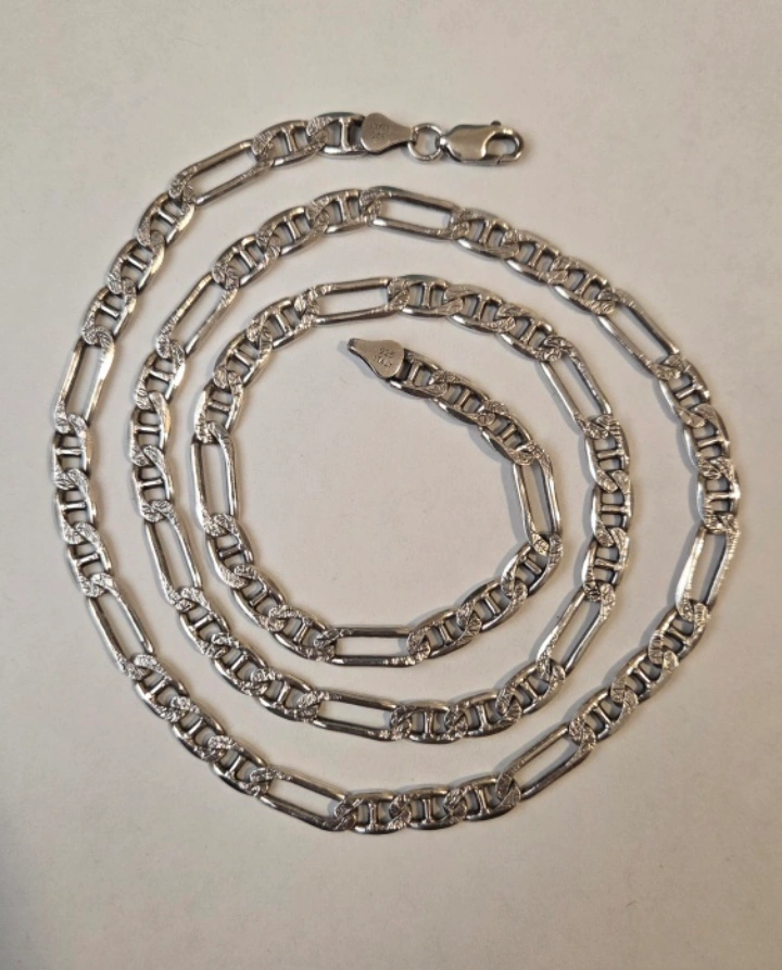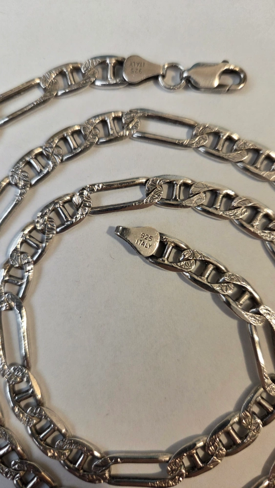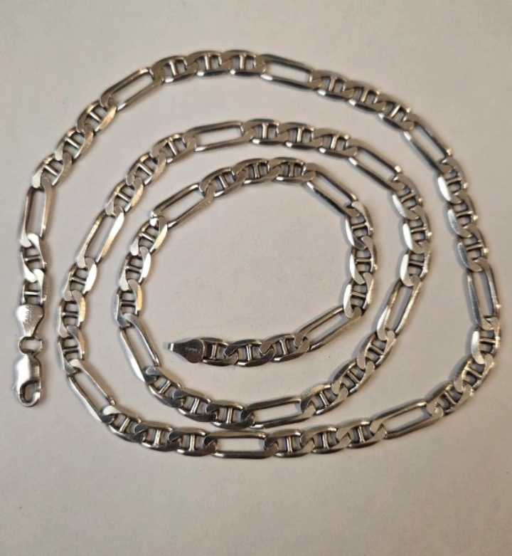 This is a beautiful 925 Italy silver chain! It's in good condition maybe just needs a little professional deep cleaning. The chain has a unique design with alternating mariner and figaro links.