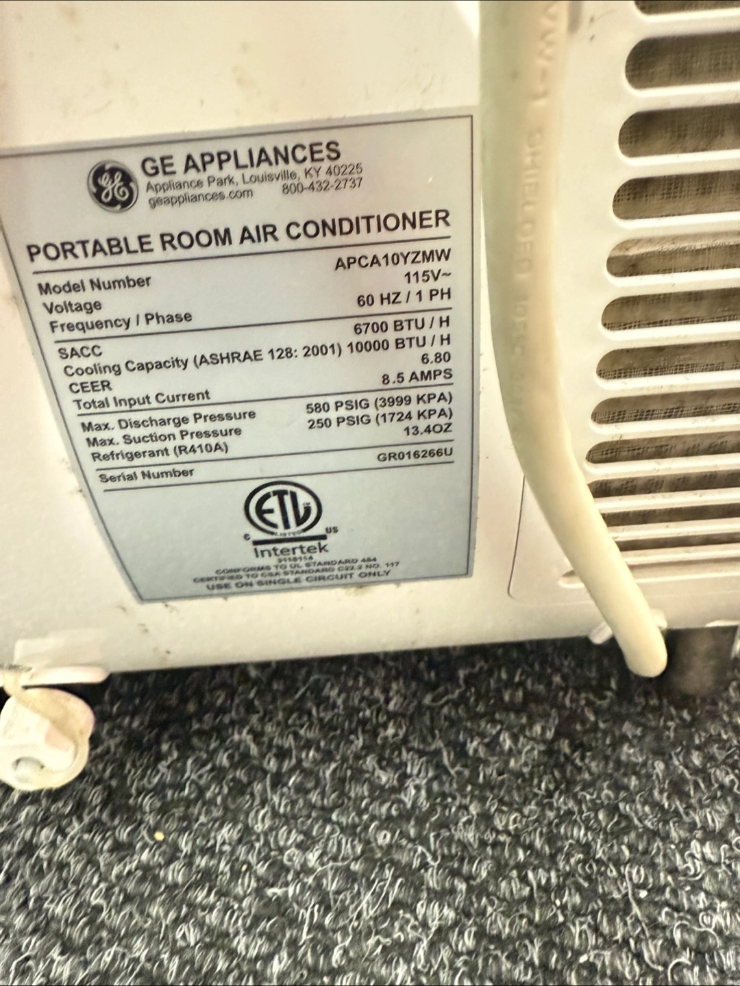 165Selling a GE portable air conditioner in great condition. It's white and ready to keep you cool! Perfect for small spaces and easy to move around