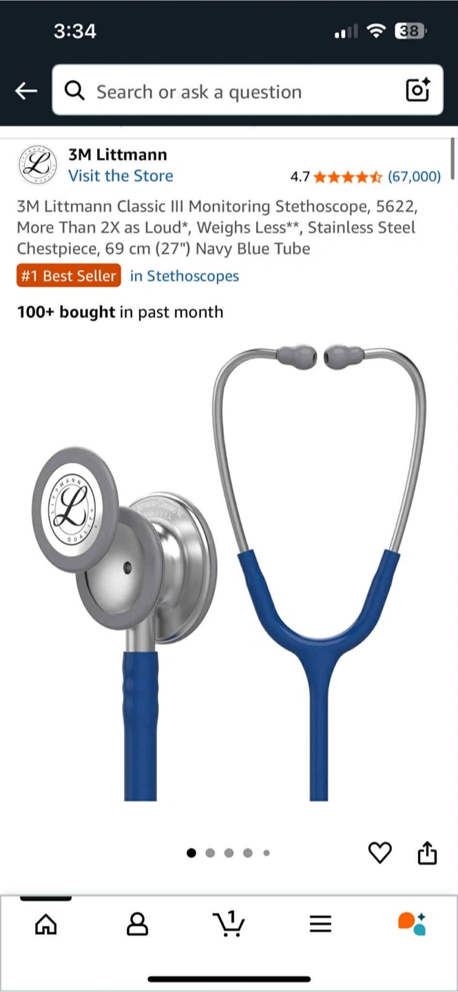 Selling a brand new Littmann Classic III stethoscope in navy blue. It's still in the box and has never been used! Comes with all original component.