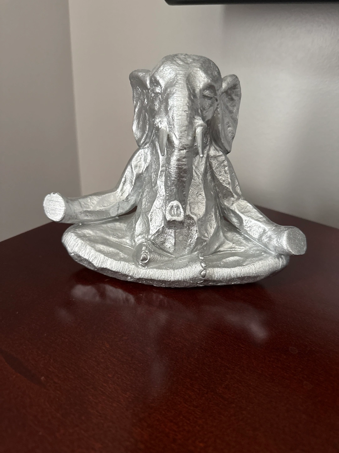 18This is a cute silver elephant statue. It's perfect for adding a touch of zen to any room. It is in great condition and ready for a new home!