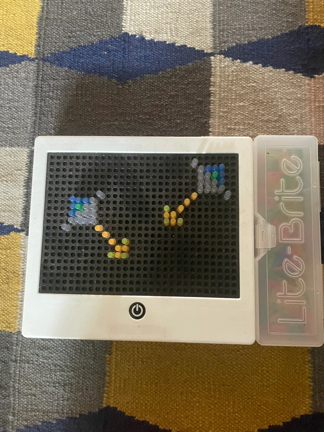 Selling a Lite-Brite Magic Screen! It comes with the screen and a case full of the little pegs to create glowing designs. Hours of fun for kids!