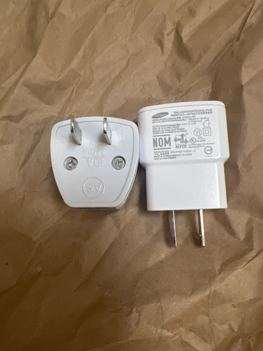 Selling a Samsung travel adapter and charger. It is white and in good condition. Model: EP-TA20JWE-US INPUT: 100-240V ~ 50-60 Hz 0.50A OUTPUT: 9.0V == 1.67A or 5.0V == 2.0A