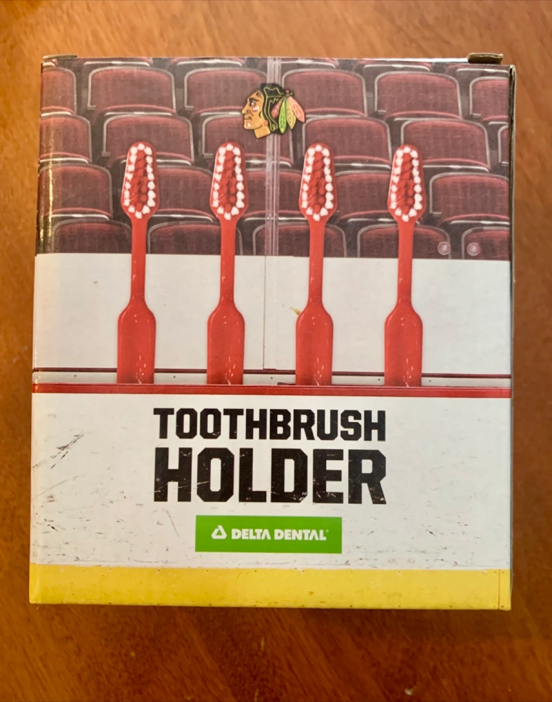 Chicago Blackhawks toothbrush holder. Still in the original box, never used, and ready to add some team spirit to your bathroom!