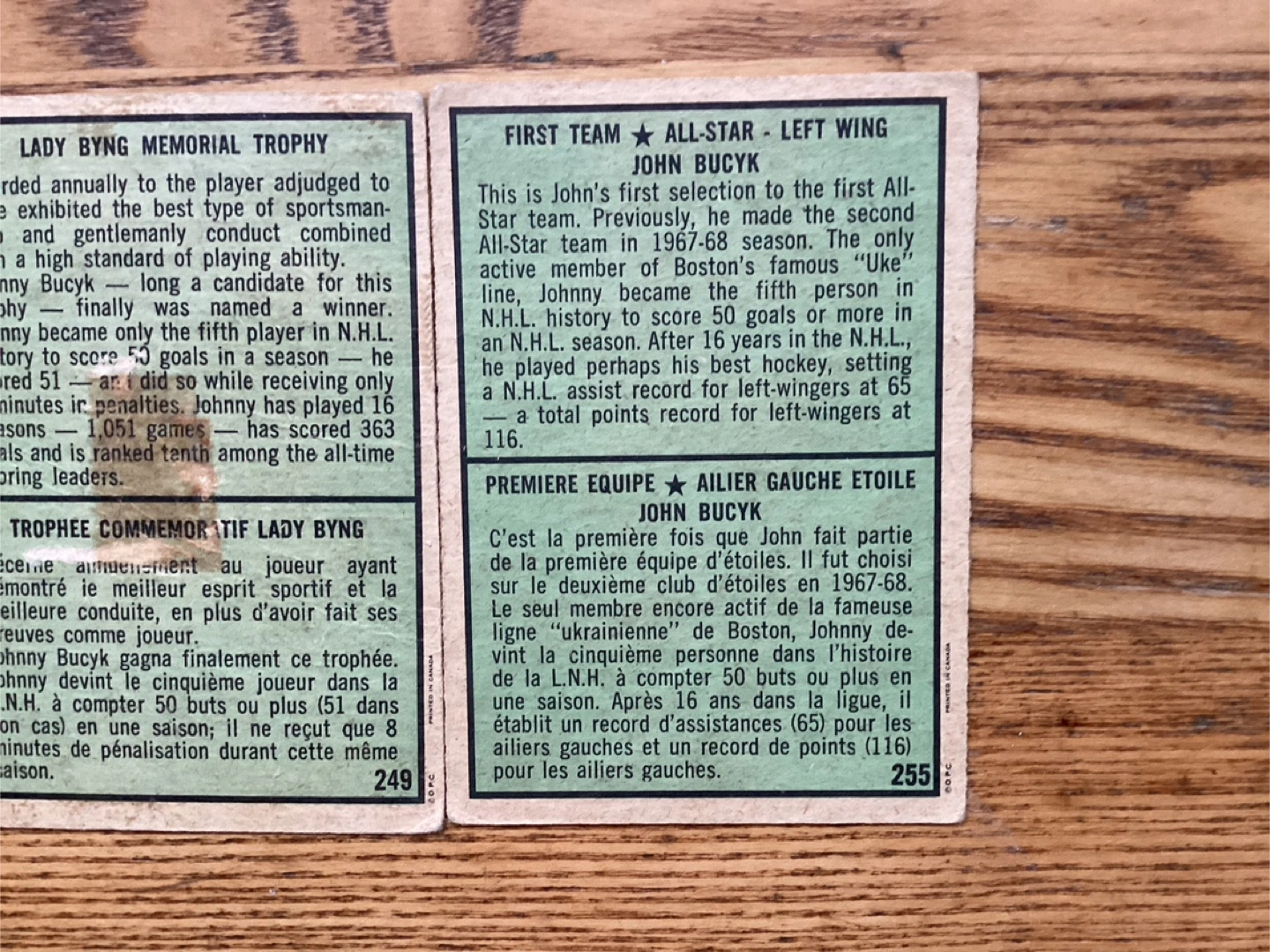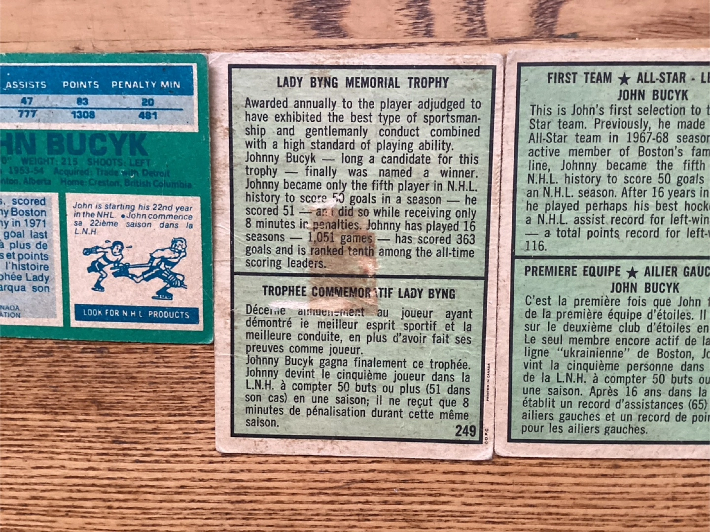 3 O-PEE-CHEE JOHNNY BUCYK Card #’s 95, 249 & 255 !