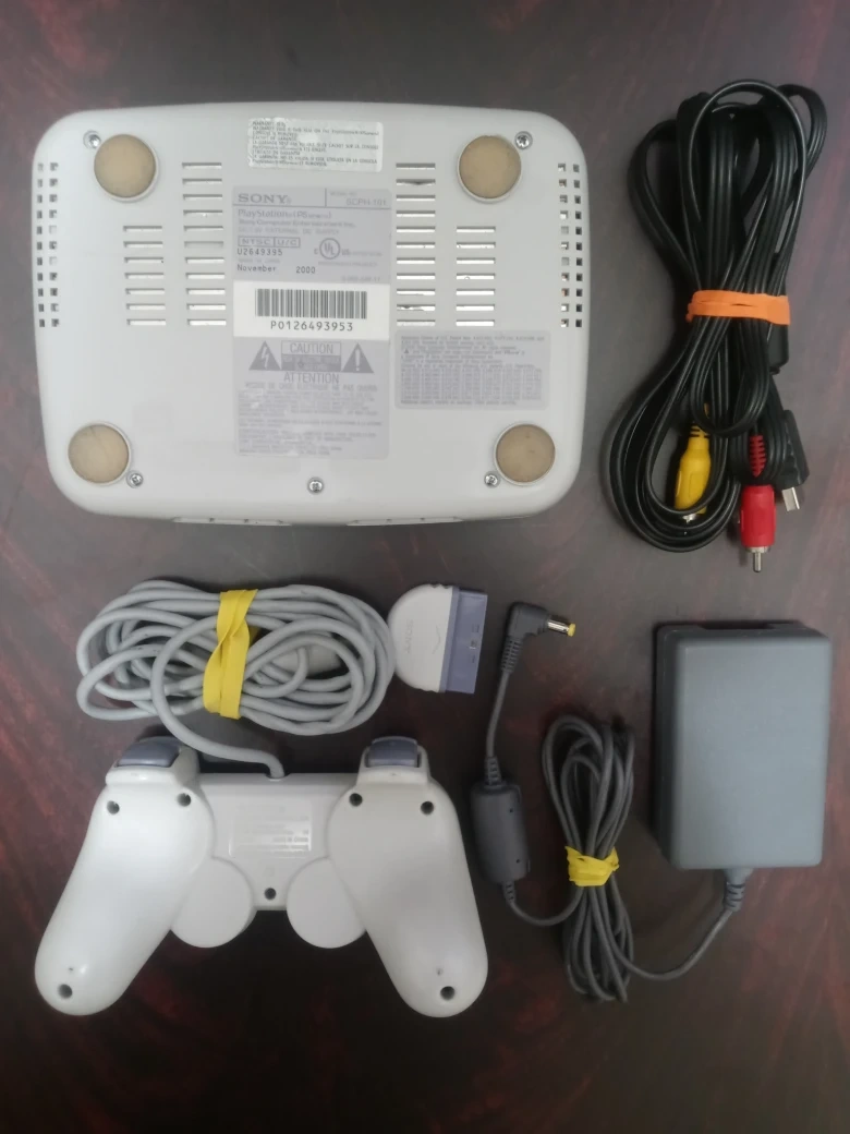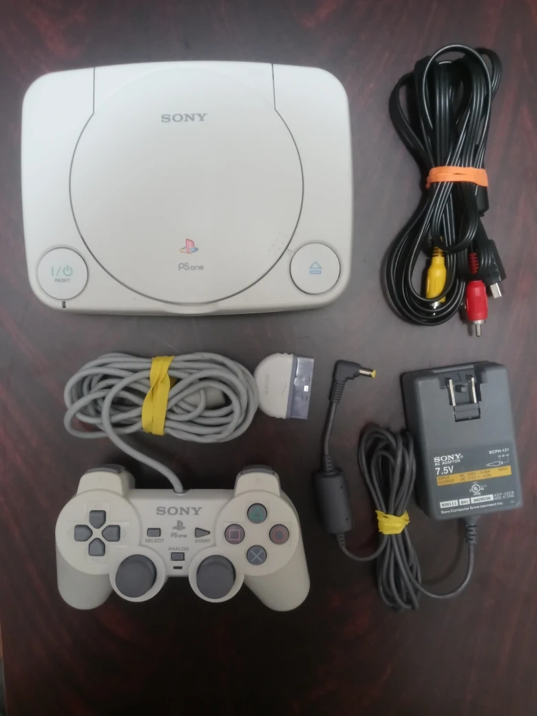Selling a used Sony PlayStation PS One console. It comes with all the necessary components, including the controller, power adapter, and AV cables. Perfect for retro gaming!