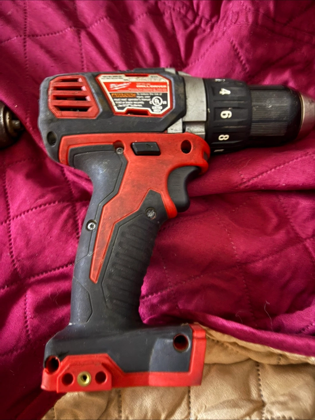 Selling a used Milwaukee cordless drill. It's in good working condition and ready for your next project! Has some signs of wear, but nothing that affects its performance.