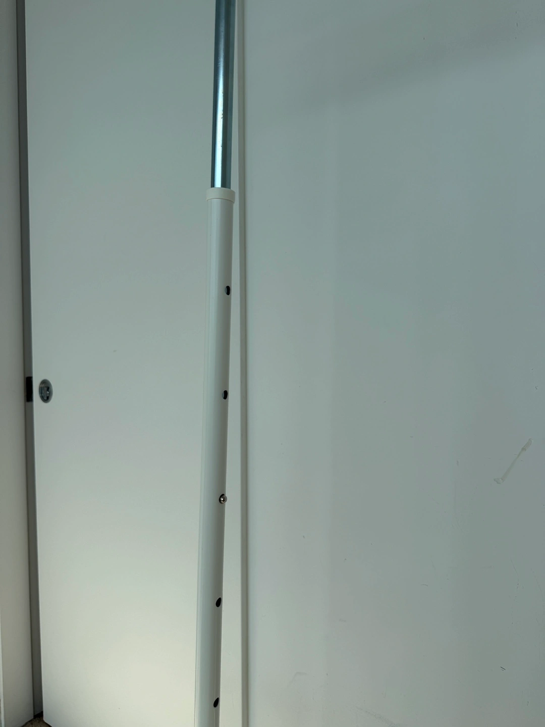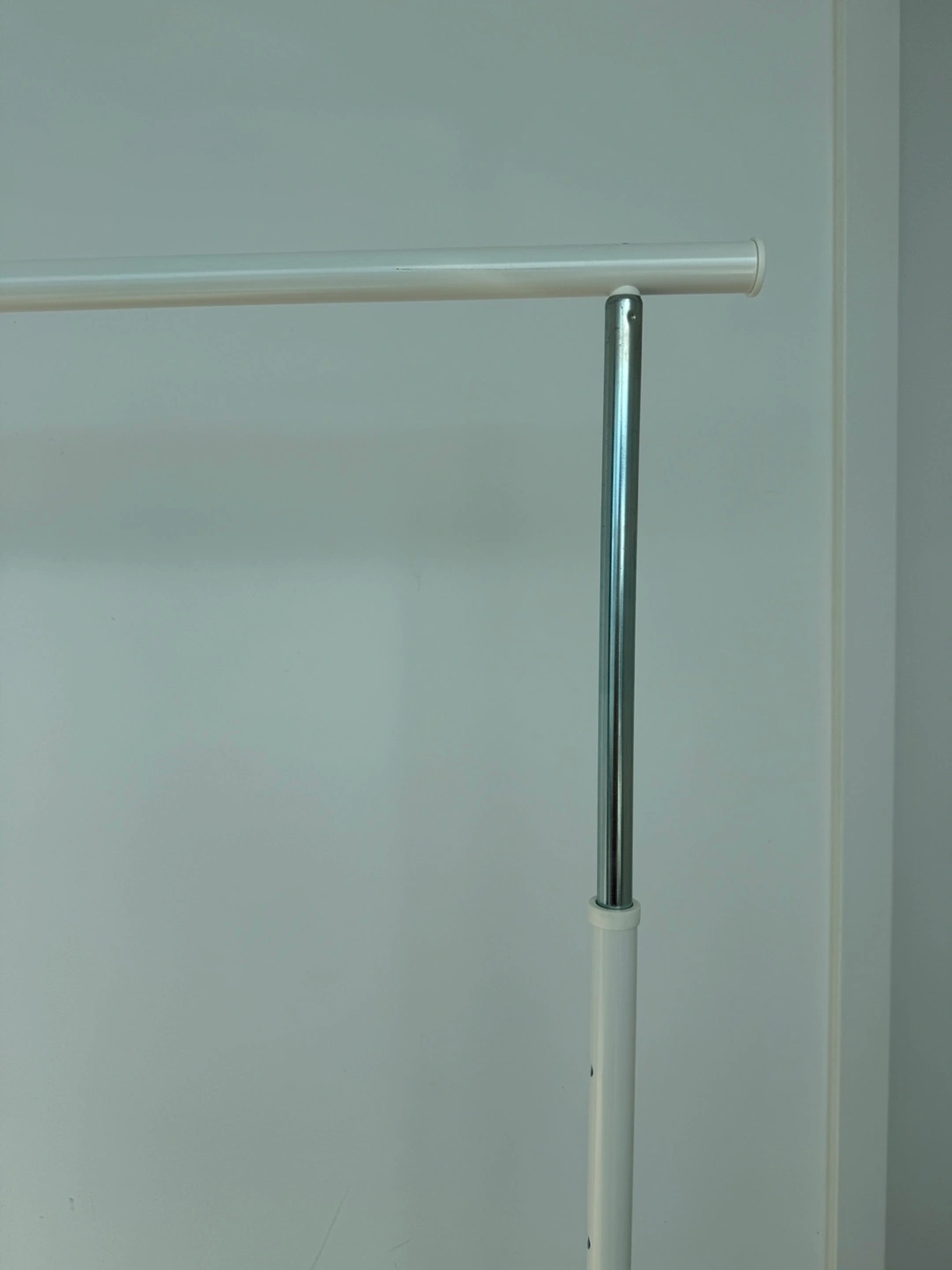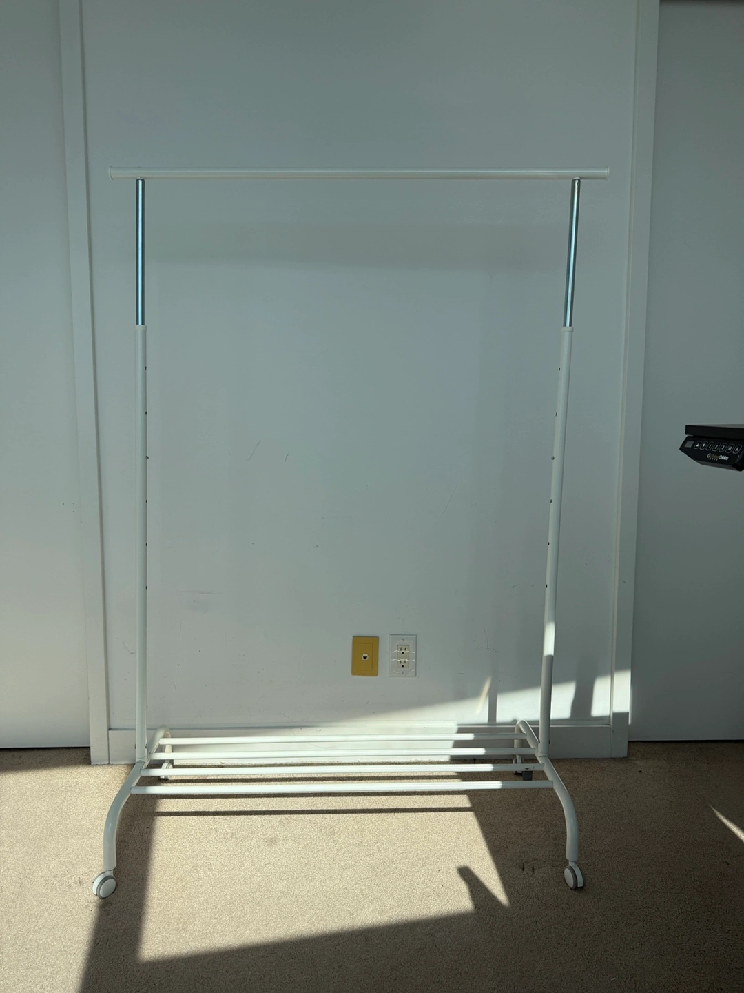 Selling an IKEA RIGGA adjustable clothes rack in white.