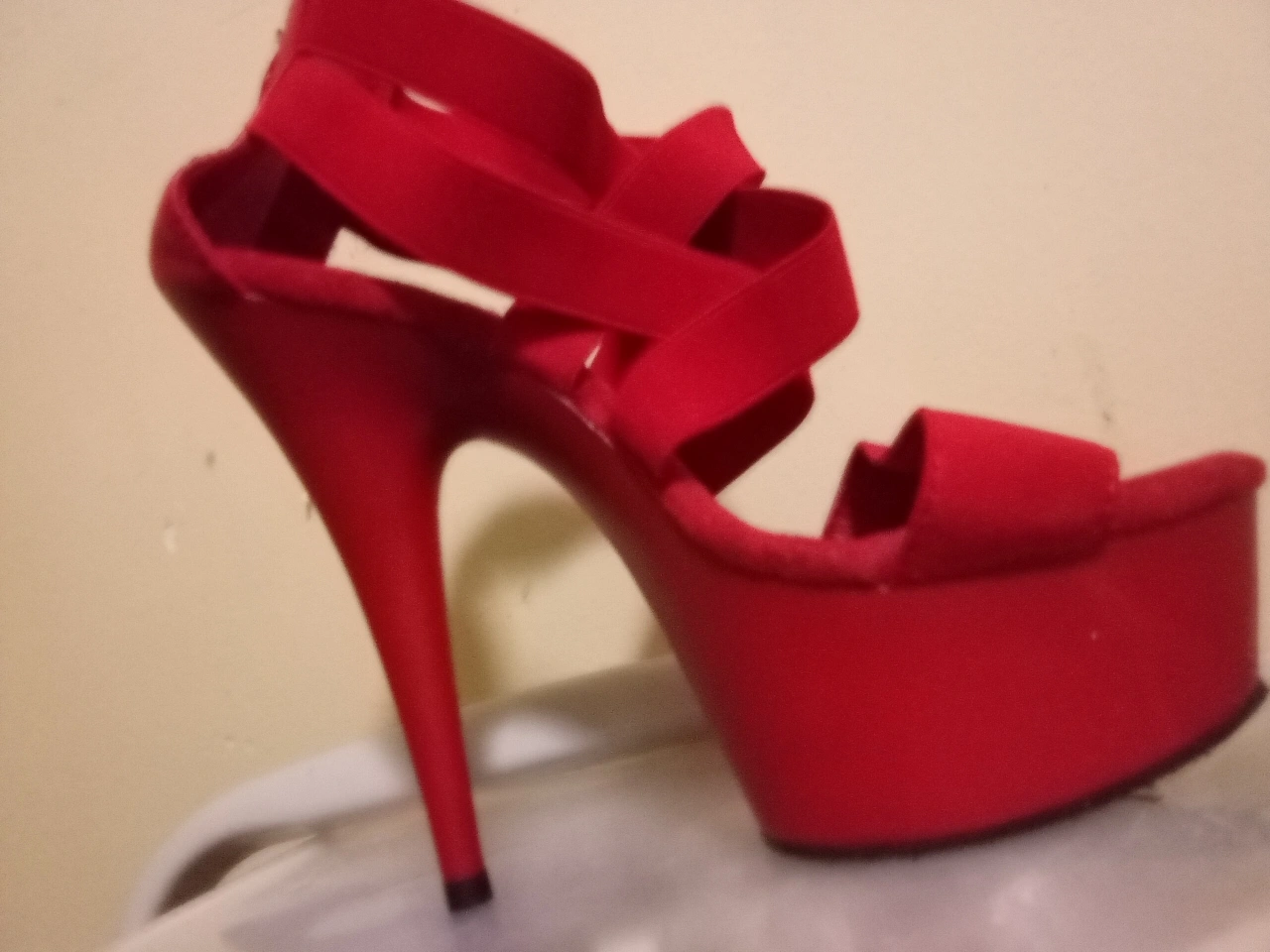 24These red platform heels are sure to make a statement! The straps add a unique touch. They're in great condition and ready for a new home