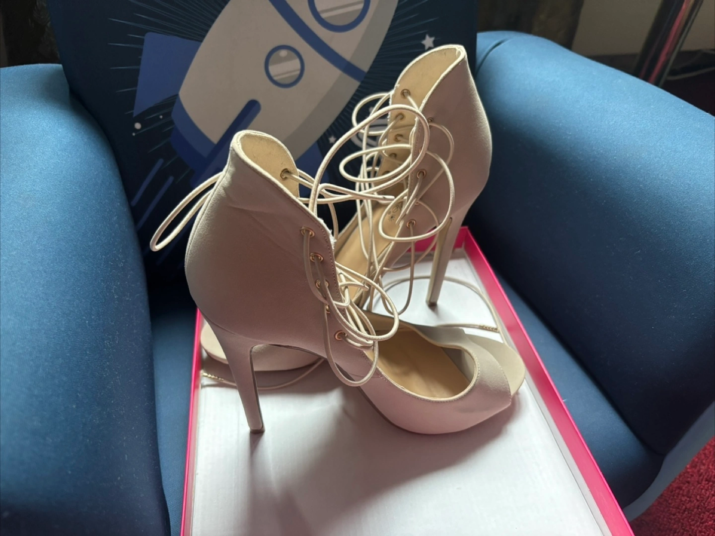 Selling these never worn, gorgeous heels! They are a size 9.5 and come with the box (if you prefer). They feature a lace-up design and a peep toe. Perfect for a night out!