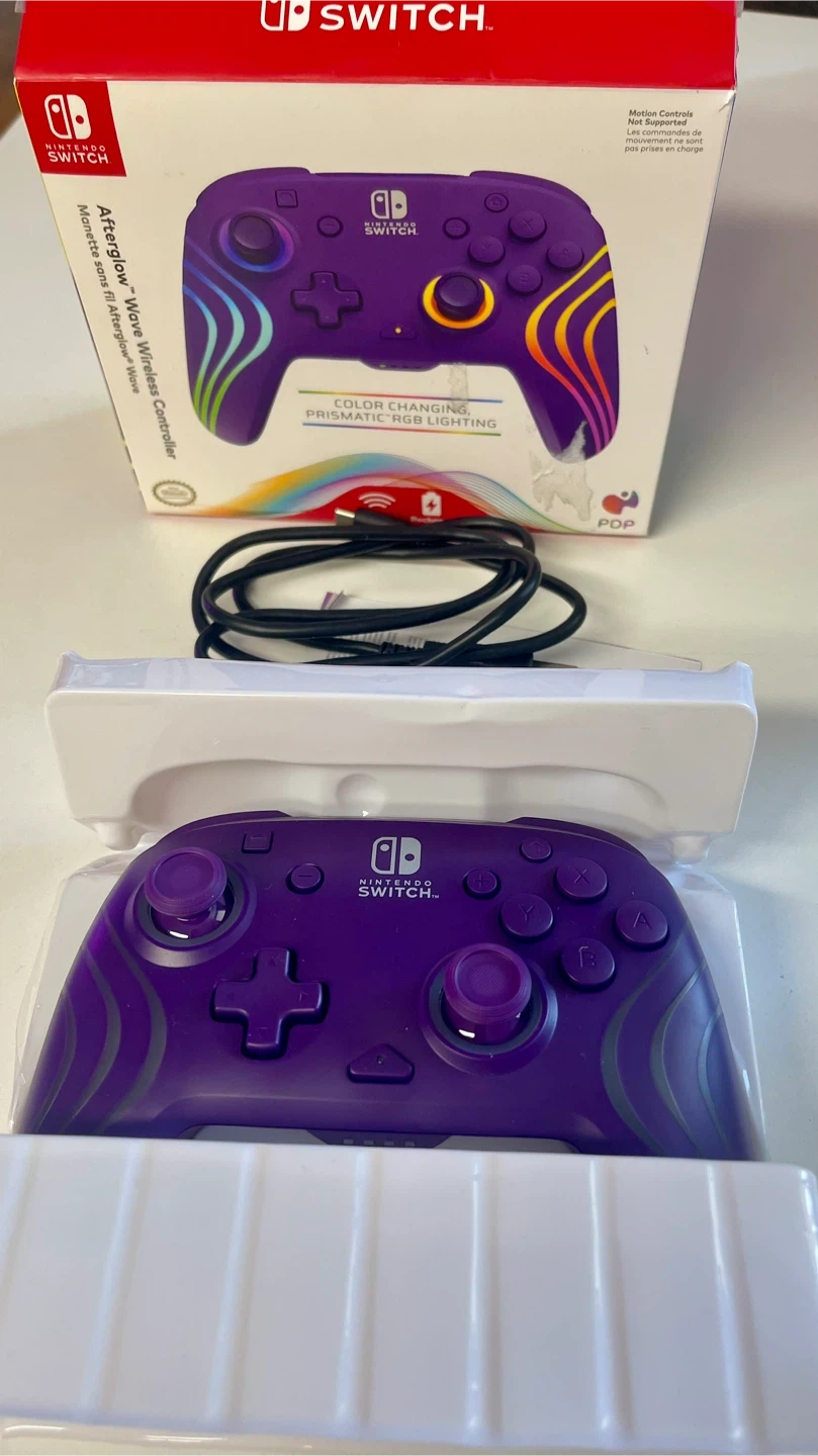 Selling a brand new (open box) Afterglow Wave wireless controller for the Nintendo Switch! It's still in its original packaging. This controller features colour changing prismatic RGB lighting and motion controls. Perfect for enhancing your gaming experience!