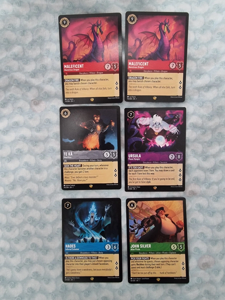 6 x Legendary non foil (incl. 2 x Maleficent, Hades, Ursula) sleeved