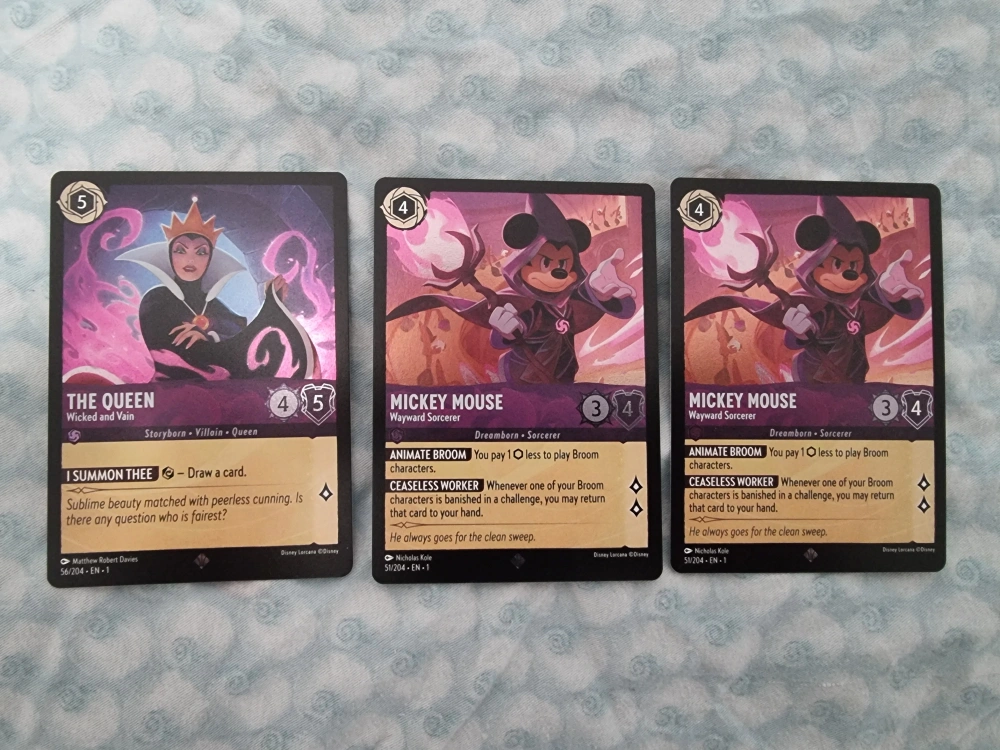 3 x Super Rare foils (Queen, Sorcerer x 2) sleeved