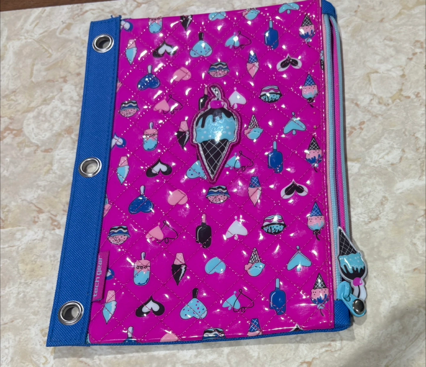This is a Tech Gear supplies keeper with a fun ice cream theme! It's perfect for school or organizing your papers. The pocket keeper is in great condition and ready for a new home
