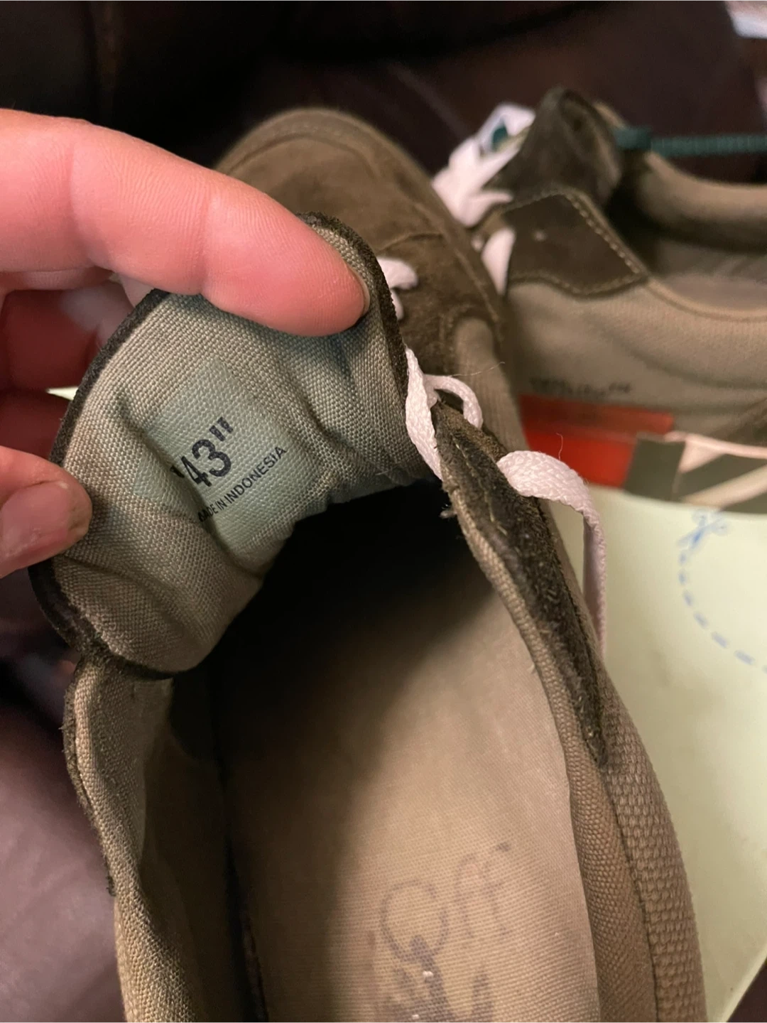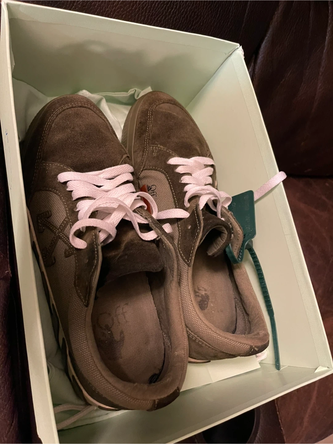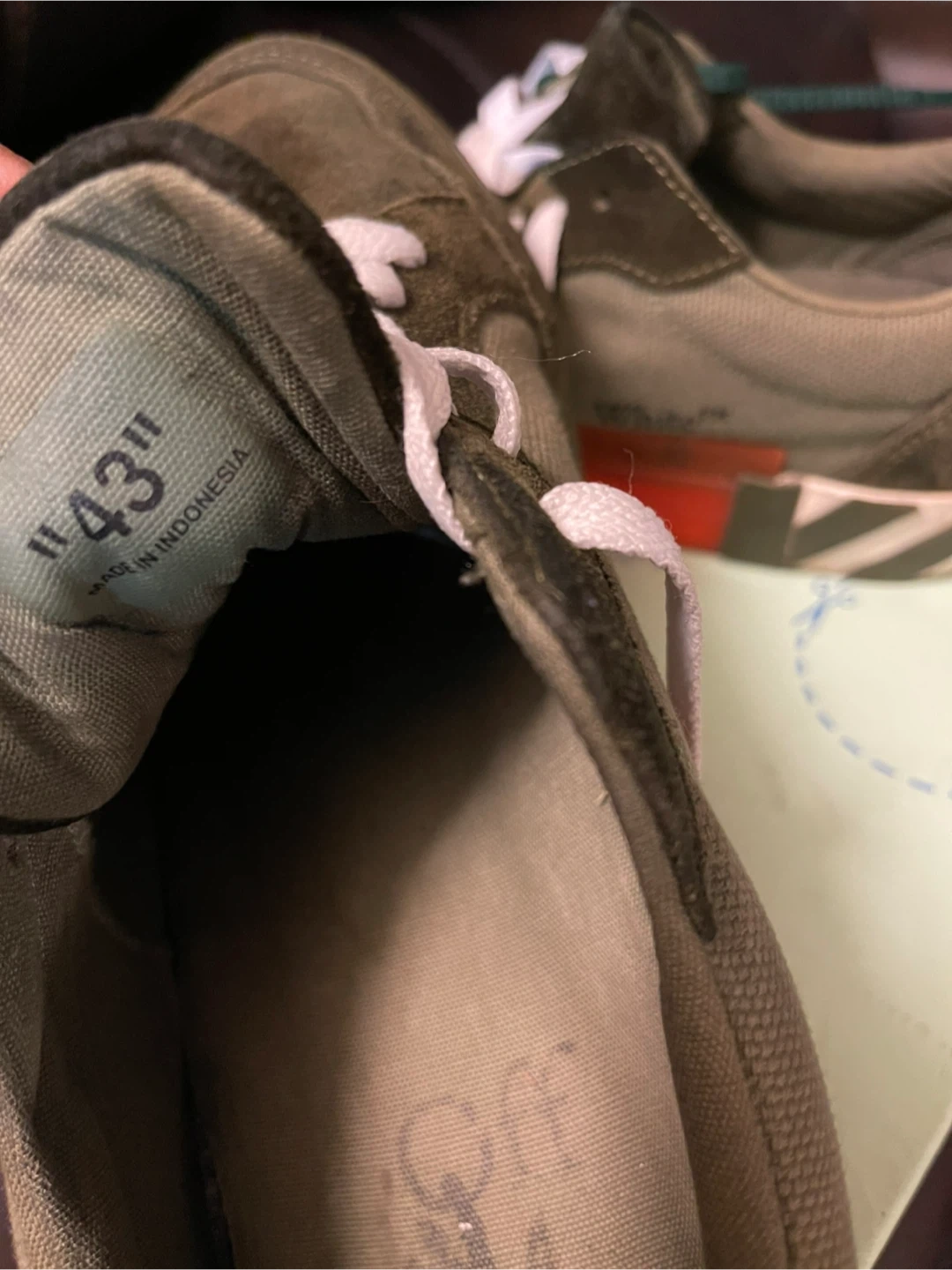 Selling a pair of Off-White Vulcanized Low Top sneakers. These are a size 43. They show some signs of wear, but are still in good condition and come with the original box.