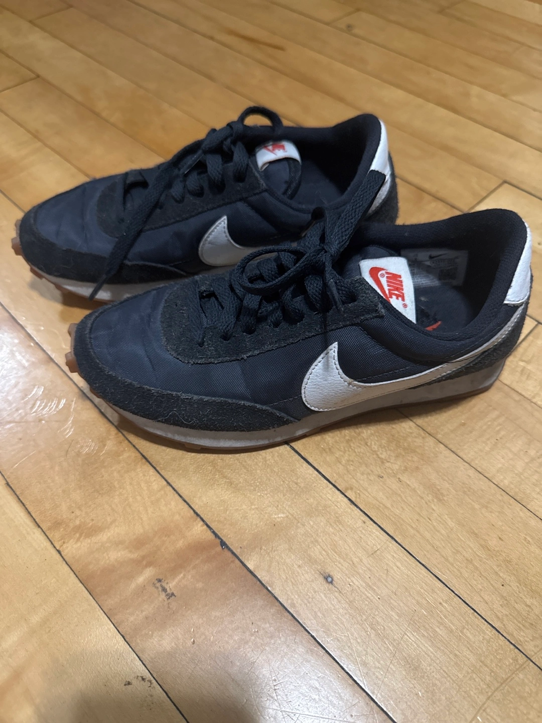 Selling a pair of Nike Daybreak sneakers in black and white. These are in used condition but still have plenty of life left! They're a classic style that goes with everything. Please see photos for details on wear.