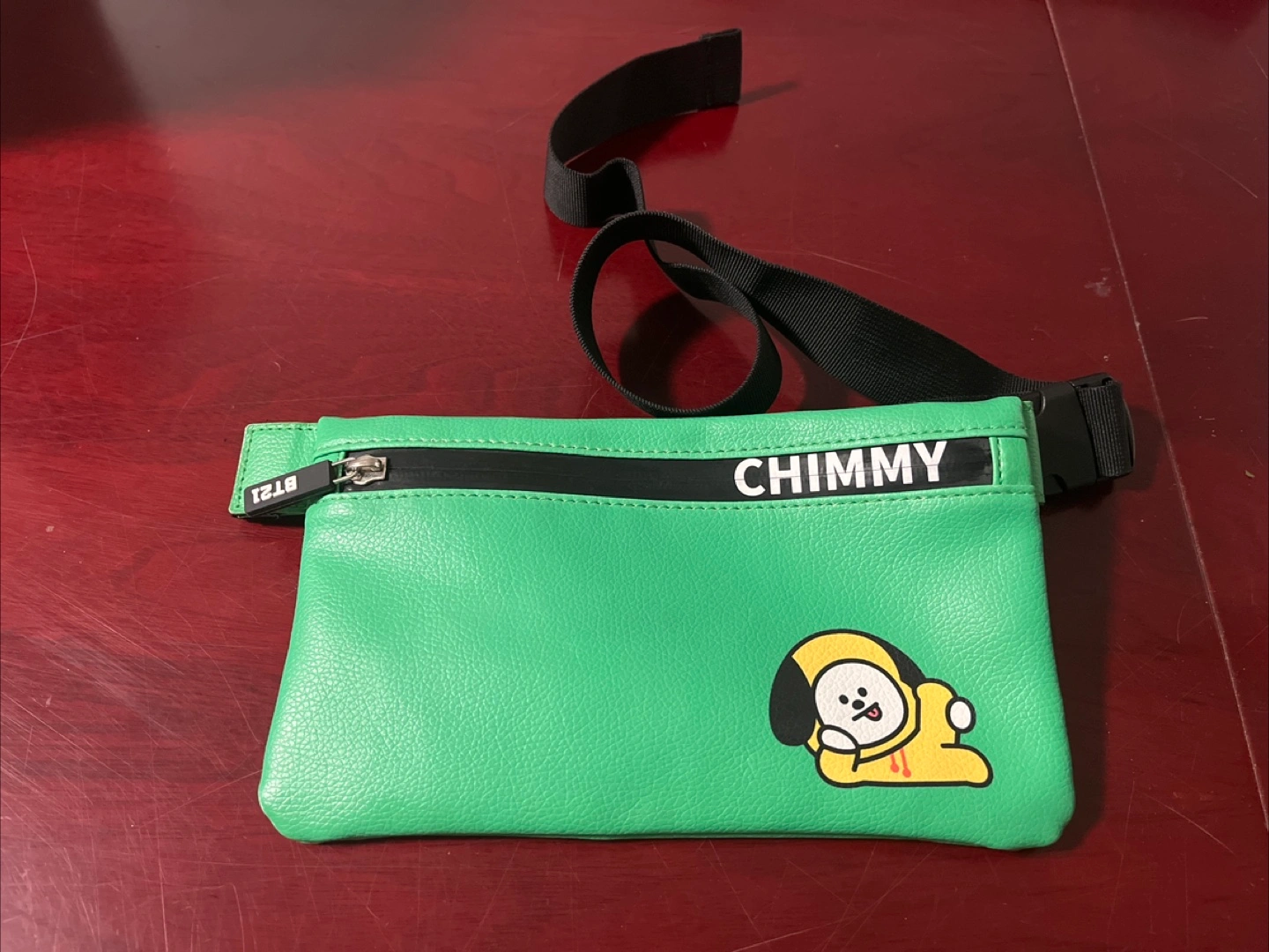 Here's a cute BT21 Chimmy belt bag! It's green and features the Chimmy character. Perfect for carrying your essentials in style