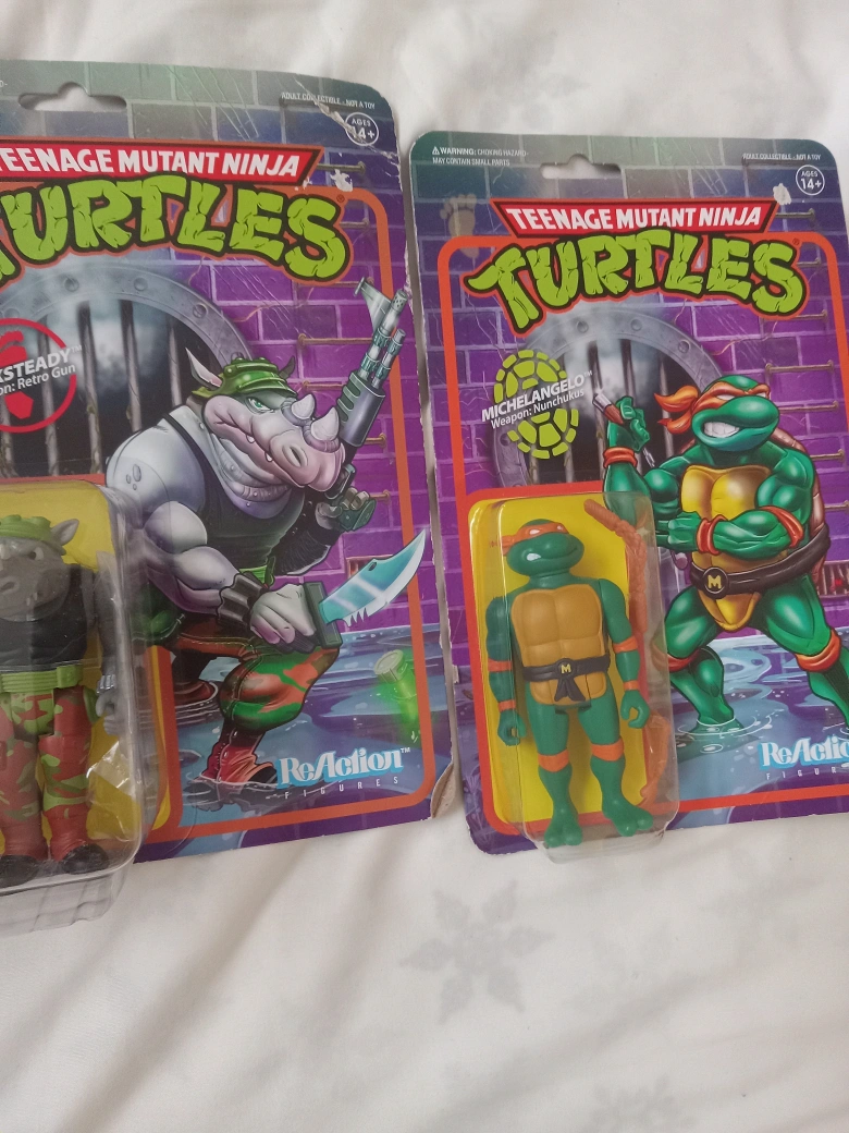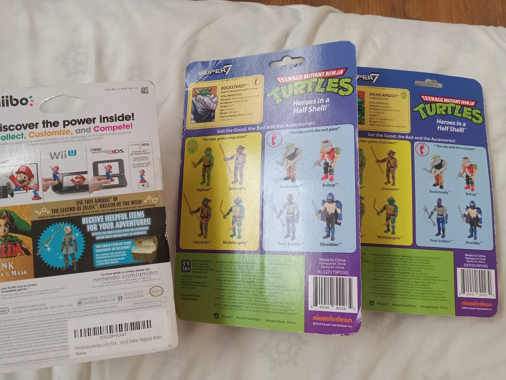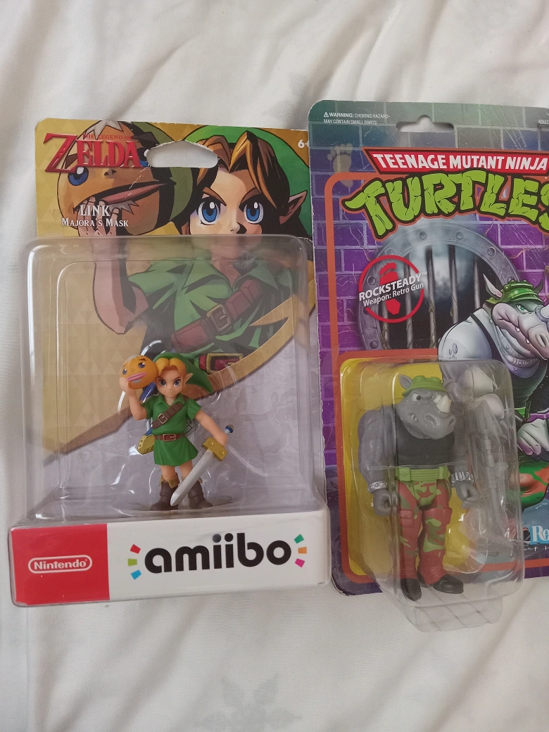 I'm selling a new Link Majora's Mask Amiibo and Teenage Mutant Ninja Turtles ReAction Figures! They are still in their original packaging. The TMNT figures include Rocksteady and Michelangelo.